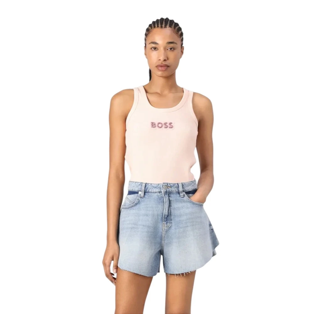 Женская майка Boss C-Ematite2-Stonebadg в розовом цвете — это стильная и универсальная модель, которая сочетает в себе комфорт, женственность и современный дизайн. Нежный розовый оттенок придаёт образу лёгкость, свежесть и романтичность, делая майку идеальным выбором для тёплого сезона. Она отлично подходит для прогулок, отдыха, путешествий, занятий спортом и создания модных повседневных образов.