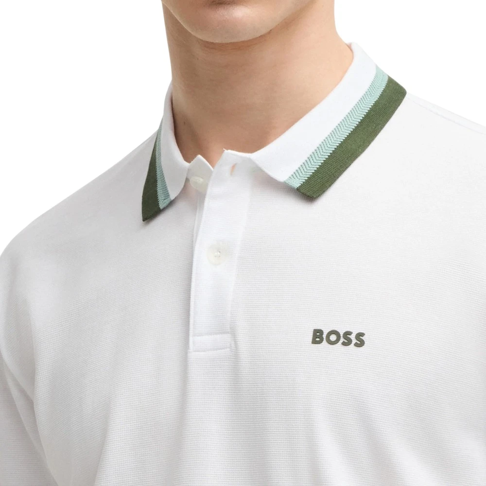 Мужское поло Boss Paddy AP Heritage в белом цвете — элегантная и универсальная модель для мужчин, которые ценят безупречный внешний вид, комфорт и высокое качество. Изделие выполнено из 100% хлопка — натурального материала, который отличается мягкостью, воздухопроницаемостью и приятной текстурой. Ткань позволяет коже дышать, обеспечивает комфорт в течение всего дня и идеально подходит для ежедневной носки в любое время года.