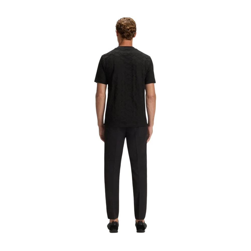 Черный цвет придаёт модели универсальность, сдержанность и современный характер, а полосатый дизайн делает образ более динамичным и оригинальным. Такая футболка легко сочетается с джинсами, брюками, шортами, спортивной одеждой и лёгкими куртками, позволяя создавать стильные casual, sport casual и smart casual образы. Классический крой обеспечивает удобную посадку и свободу движений, а фирменная эстетика Boss подчёркивает хороший вкус владельца.