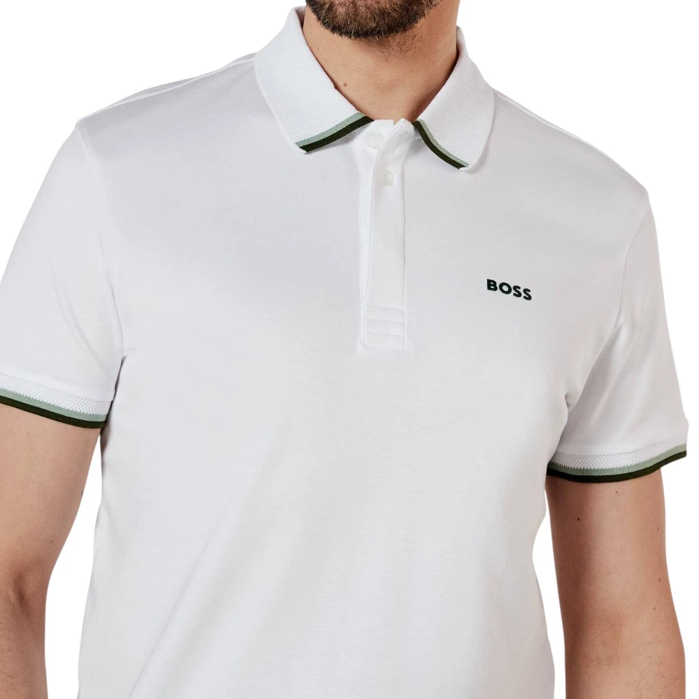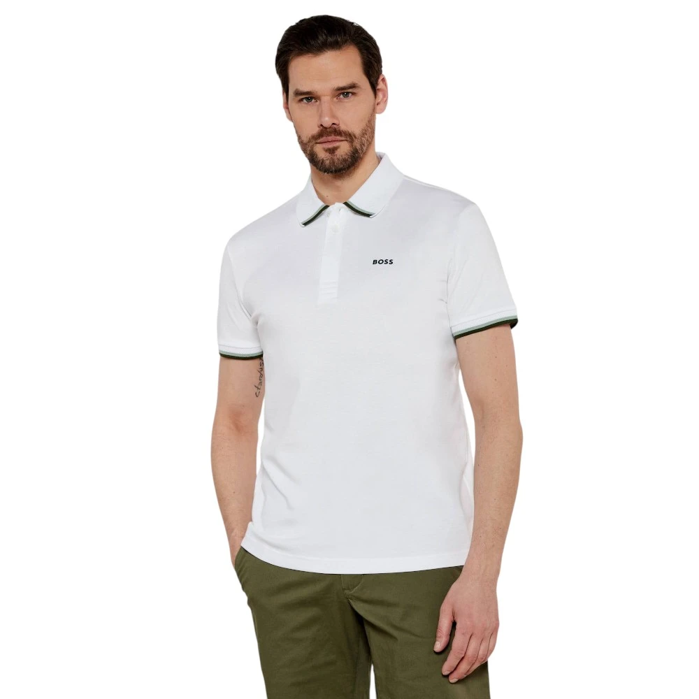 Мужское поло Boss Paddy Lux Heritage в белом цвете — элегантная и стильная модель для мужчин, которые ценят безупречный внешний вид, комфорт и высокое качество. Изделие выполнено из 100% хлопка — натурального материала, который отличается мягкостью, воздухопроницаемостью и приятной текстурой. Ткань позволяет коже дышать, обеспечивает комфорт в течение всего дня и идеально подходит для ежедневной носки в любое время года.