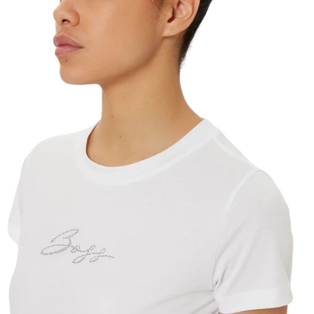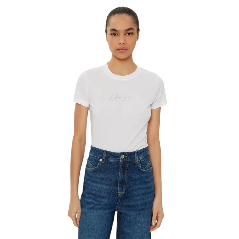 Белый цвет делает модель универсальной, свежей и особенно утончённой. Он легко сочетается с любыми оттенками и элементами гардероба, а декоративные элементы Crystal придают футболке выразительность, лёгкое сияние и премиальный акцент. Такая модель гармонично смотрится с джинсами, юбками, брюками, шортами, жакетами и спортивной одеждой, позволяя создавать стильные casual, sport casual и smart casual образы. Классический крой обеспечивает удобную посадку и свободу движений, а фирменная эстетика Boss подчёркивает индивидуальность своей обладательницы.