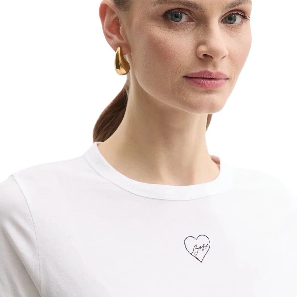 Белый цвет делает футболку максимально универсальной и легко сочетаемой с любыми элементами гардероба. Она гармонично смотрится с джинсами, юбками, брюками, шортами, спортивной одеждой и жакетами, позволяя создавать стильные casual, sport casual и smart casual образы. Классический крой обеспечивает удобную посадку и свободу движений, а фирменная эстетика Boss подчёркивает современный вкус и индивидуальность своей обладательницы.