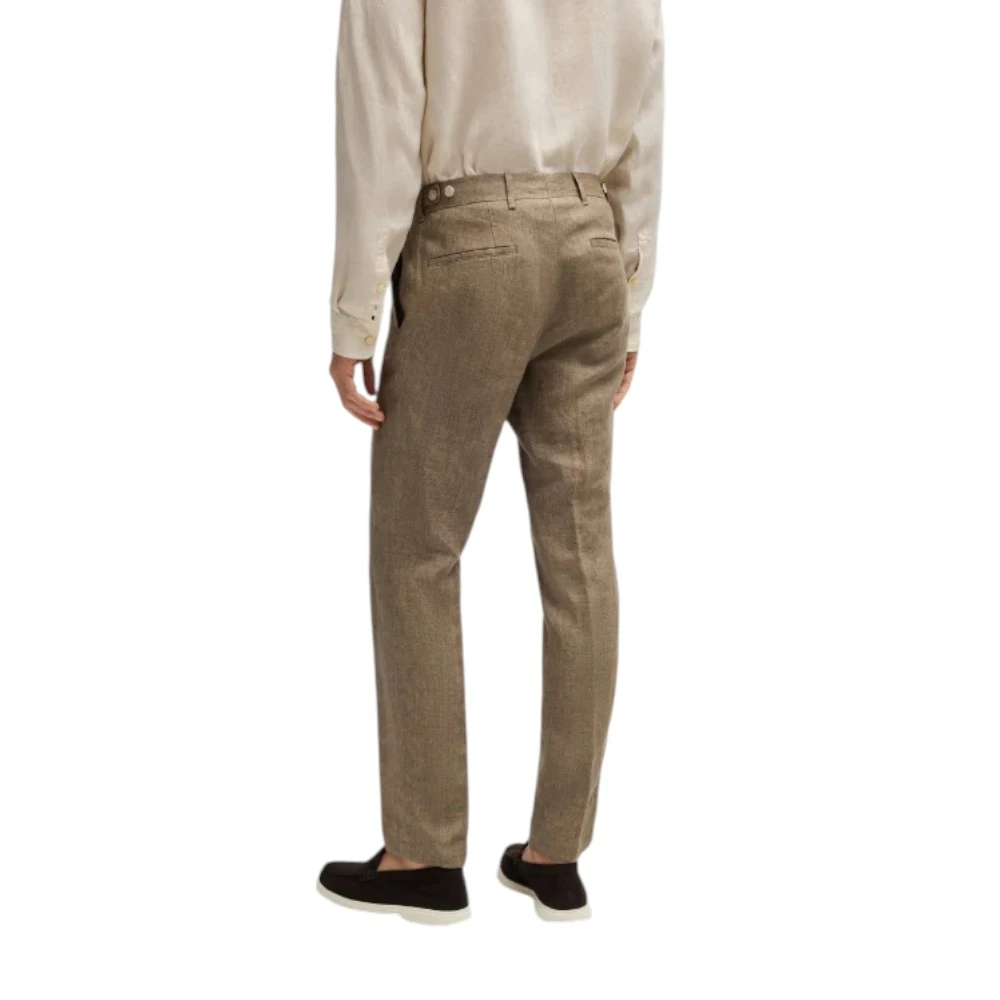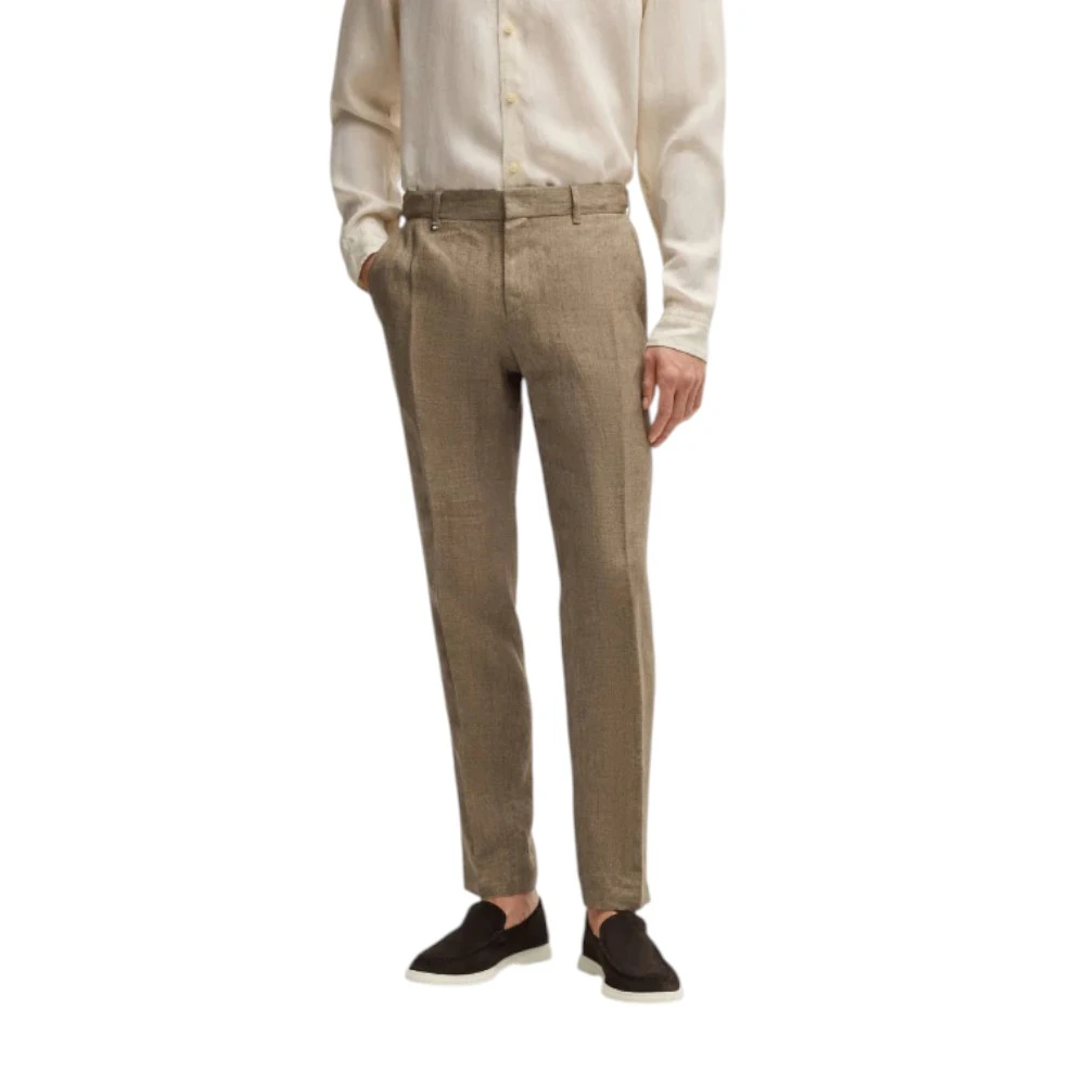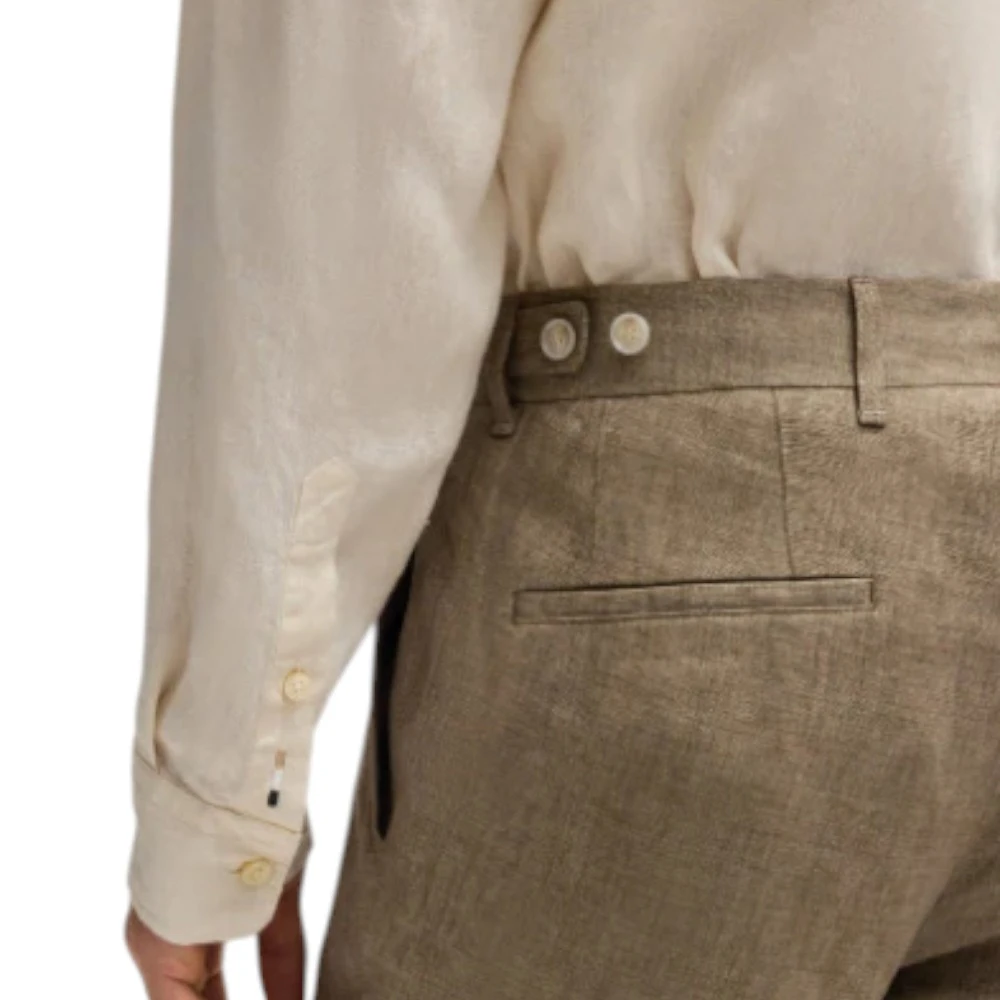 Мужские брюки Boss C-Genius-DTL-252 в бежевом цвете — стильная и лёгкая модель для мужчин, которые ценят комфорт, натуральные материалы и элегантный повседневный стиль. Изделие выполнено из 100% льна — премиального натурального материала, который отличается высокой воздухопроницаемостью, лёгкостью и способностью обеспечивать комфорт даже в жаркую погоду. Лён хорошо пропускает воздух, быстро отводит влагу и придаёт образу естественную утончённость.