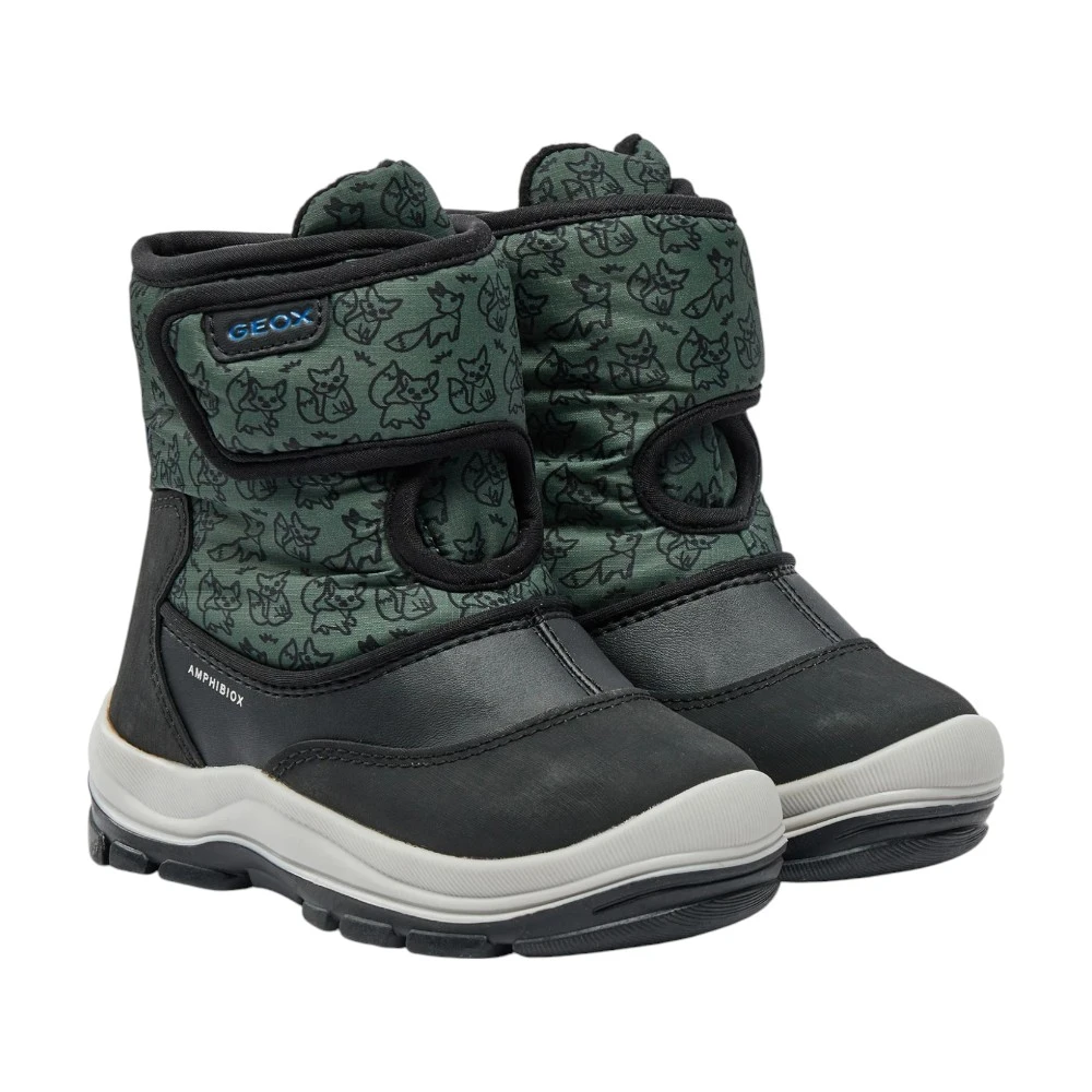 Застёжка на липучку позволяет легко надевать сапоги, а тёплая подкладка и съёмная стелька делают их особенно удобными для повседневного использования. Geox Flanfil — идеальный выбор для активных мальчиков.