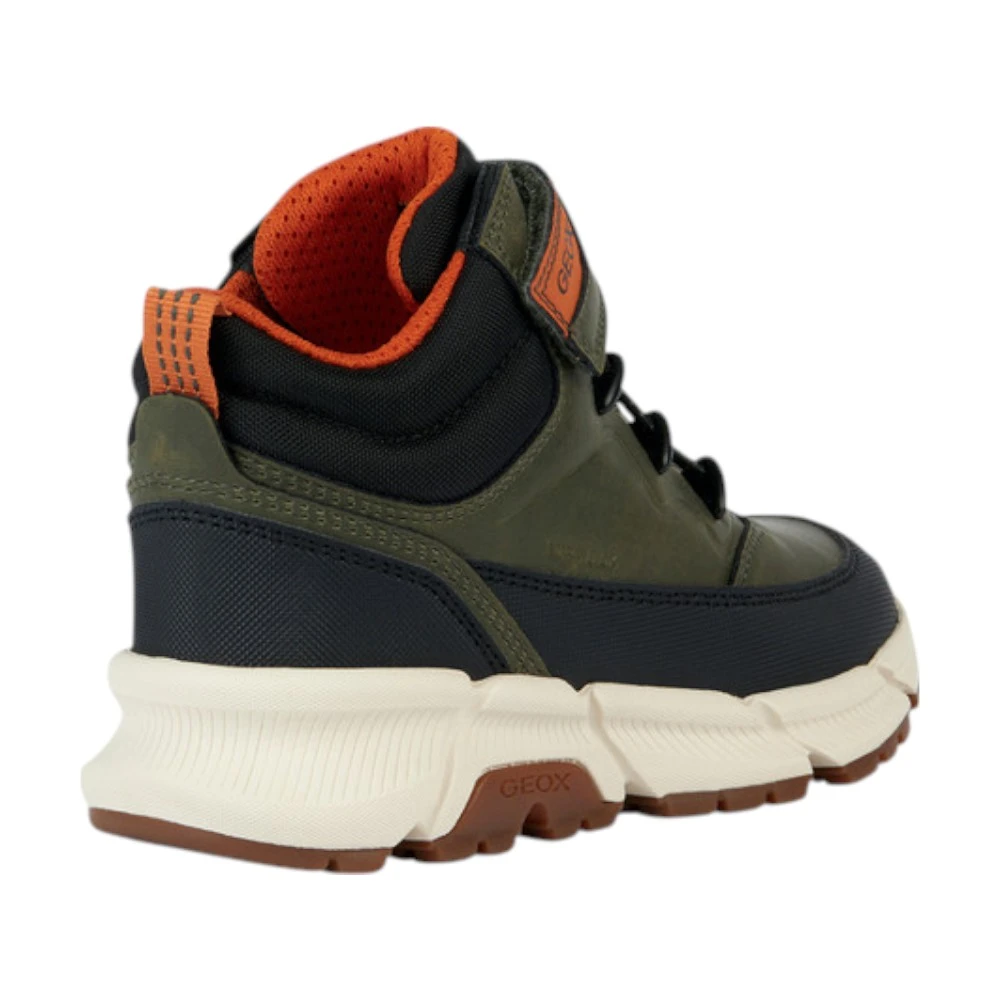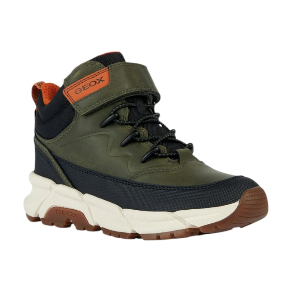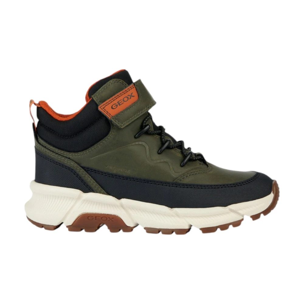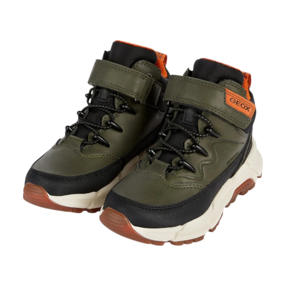 Ботинки Geox Flexyper Plus — лёгкие и удобные ботинки для мальчиков, идеально подходящие для городских прогулок и активного отдыха. Модель отличается гибкой конструкцией, отличным сцеплением и продуманной защитой стопы. Амортизирующая подошва снижает ударную нагрузку, а тёплая подкладка и усиленный носок обеспечивают комфорт и защиту от холода. Технология Geox Respira™ гарантирует водонепроницаемость и воздухопроницаемость, сохраняя ноги сухими даже под проливным дождём. Застёжки на шнурках и липучке позволяют быстро и легко надевать ботинки.