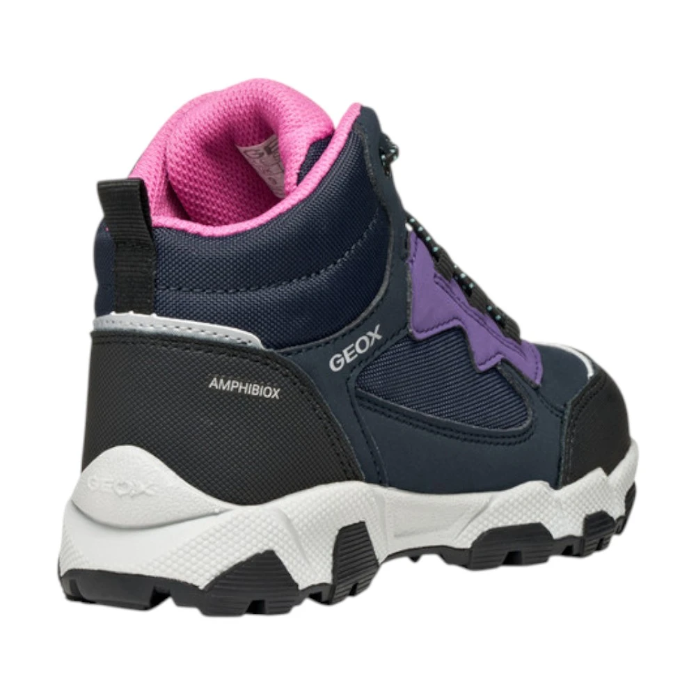 Ботинки Geox Magnetar ABX Junior — надёжная обувь для девочек, которые любят активные прогулки и приключения в любую погоду. Эти детские ботинки Geox обеспечивают полную защиту от влаги благодаря технологии Amphibiox™, сохраняя ножки сухими даже под проливным дождём. Тёплая подкладка и превосходная амортизация делают эти зимние ботинки для девочек комфортными на весь день, а лёгкая конструкция и прочная подошва гарантируют уверенную походку.