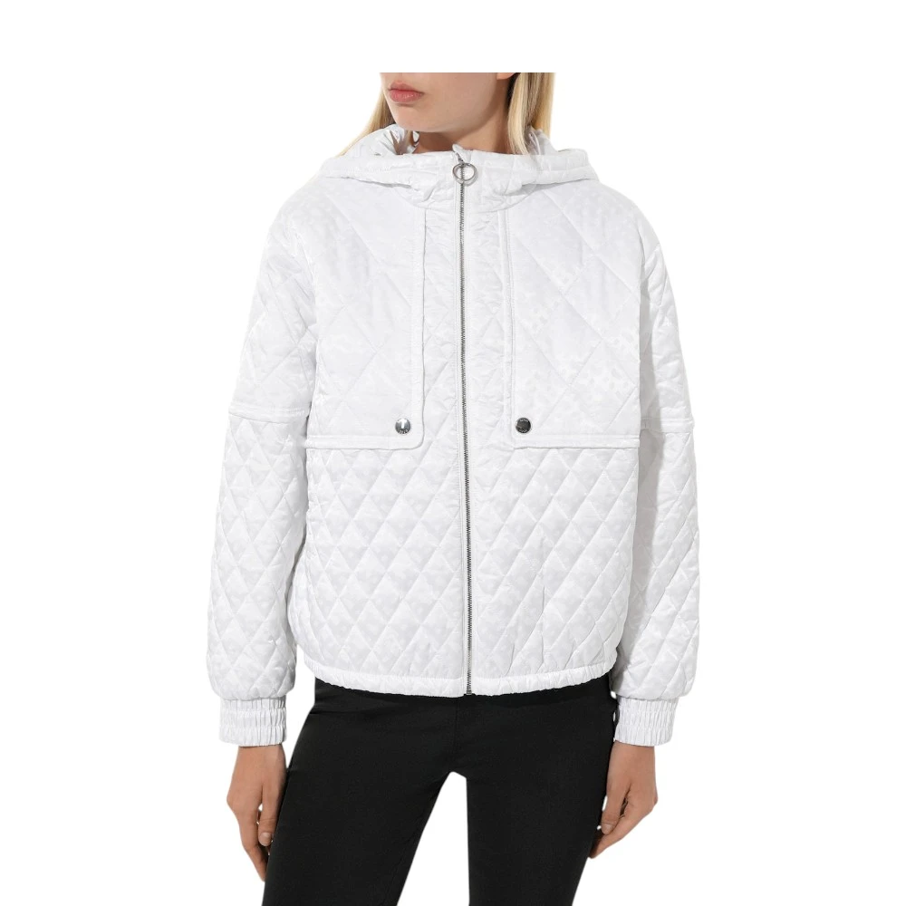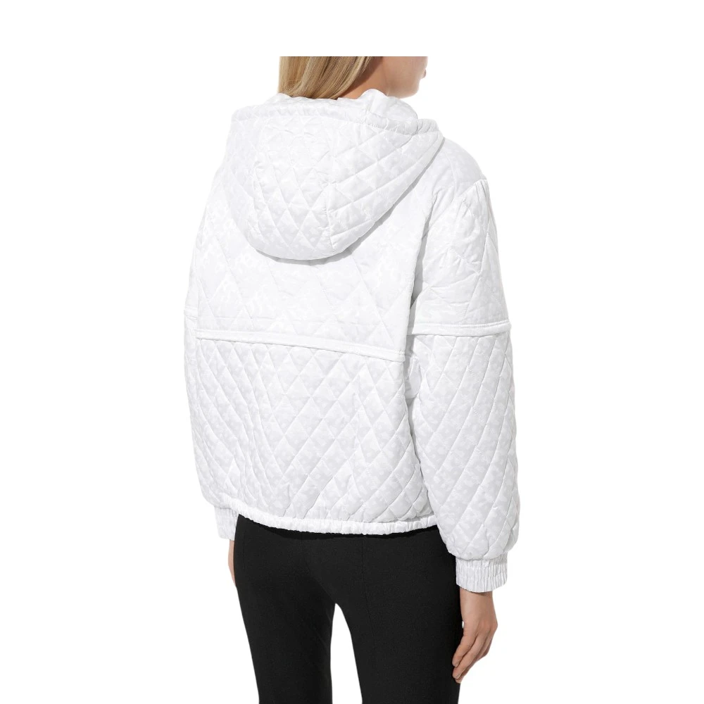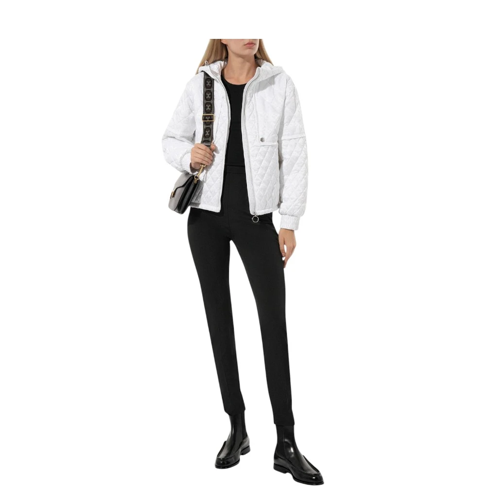 Женская куртка Boss — образец элегантного комфорта и безупречного стиля. Модель выполнена из шелковистого белоснежного текстиля с фирменным диагональным мотивом, который придаёт образу утончённость и индивидуальность. Объёмный капюшон, эластичный пояс и манжеты обеспечивают защиту от холода и идеально сохраняют форму. Фигурная кокетка создаёт изысканный эффект многослойности, подчёркивая продуманность дизайна.
