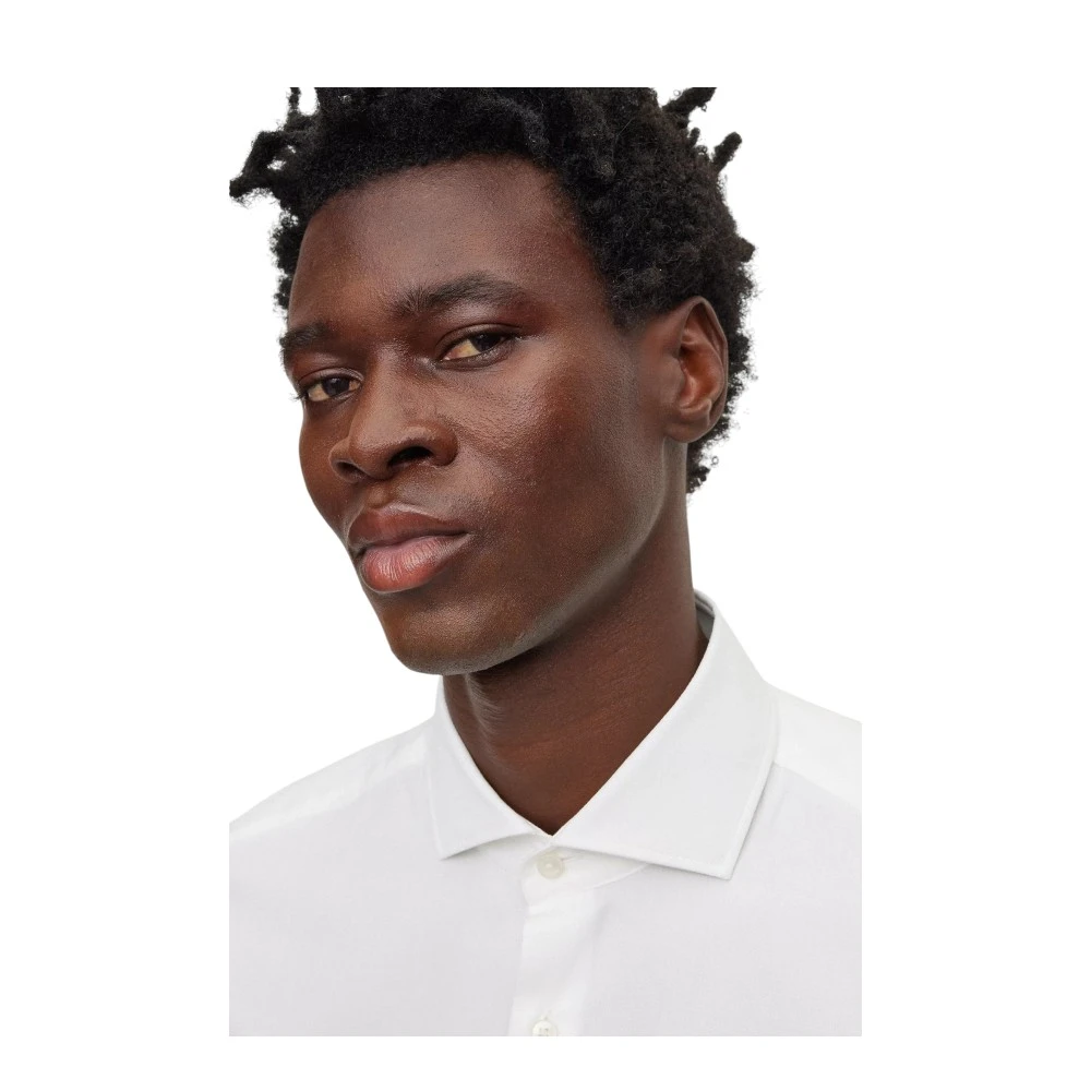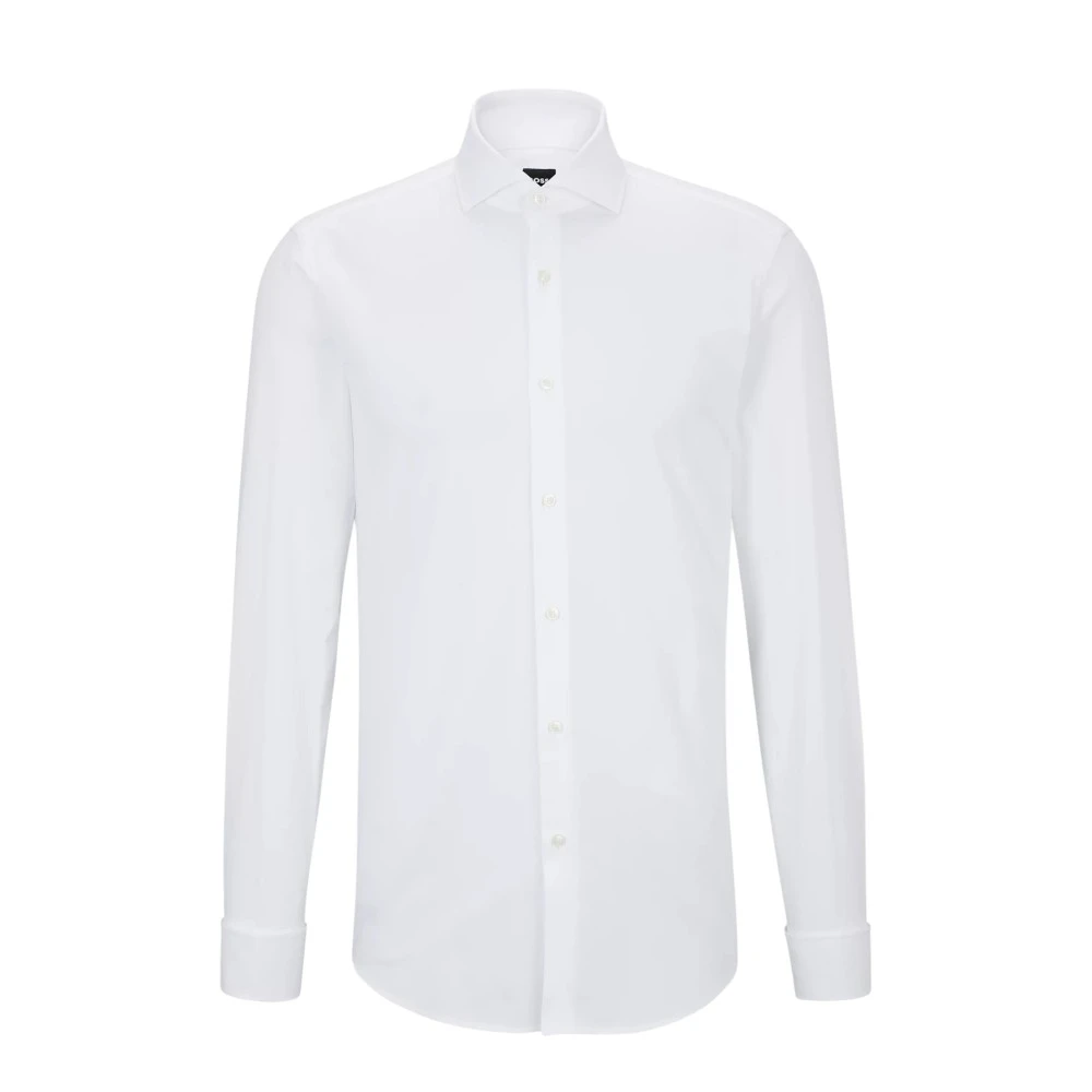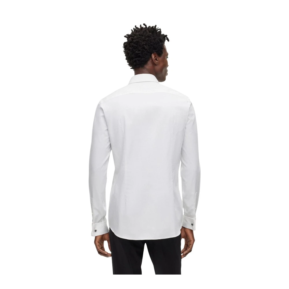 Рубашка Boss H-Hank — воплощение современного мужского стиля и безупречной посадки. Приталенный силуэт подчёркивает фигуру, сохраняя при этом свободу движений благодаря натуральному хлопку с лёгкой эластичностью. Классический воротник и французские манжеты придают образу деликатную утончённость, а лаконичный дизайн делает модель универсальным элементом делового и повседневного гардероба. Эталон элегантности в исполнении BOSS.