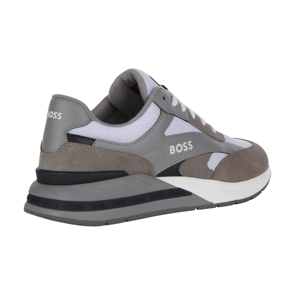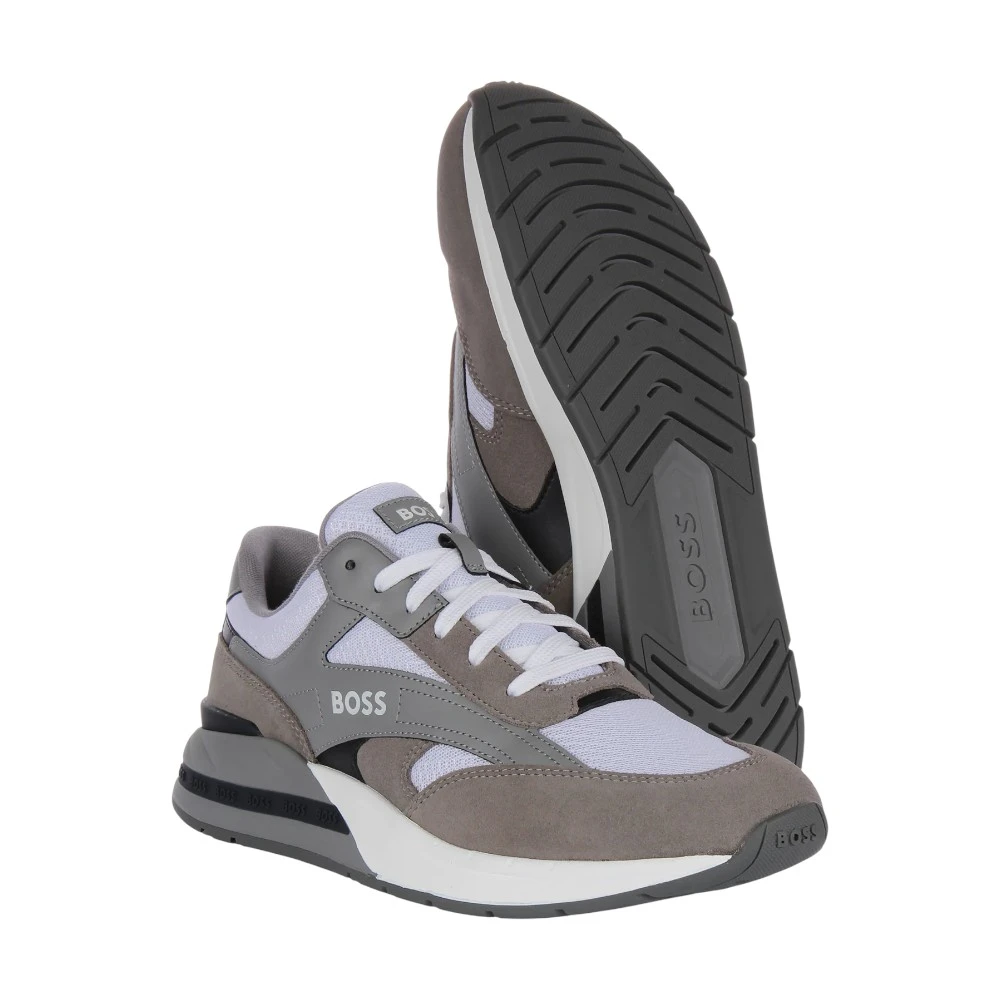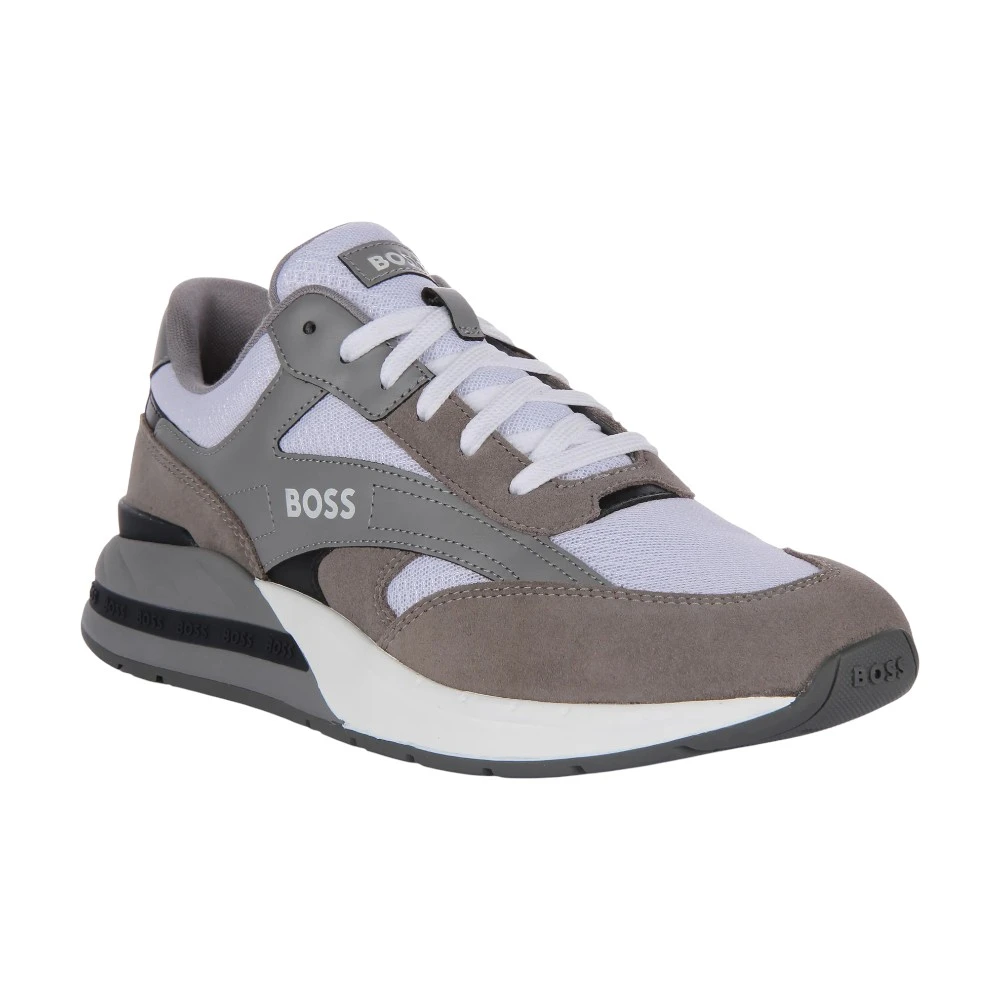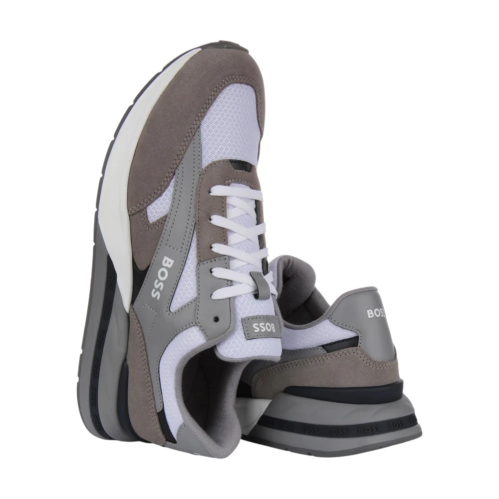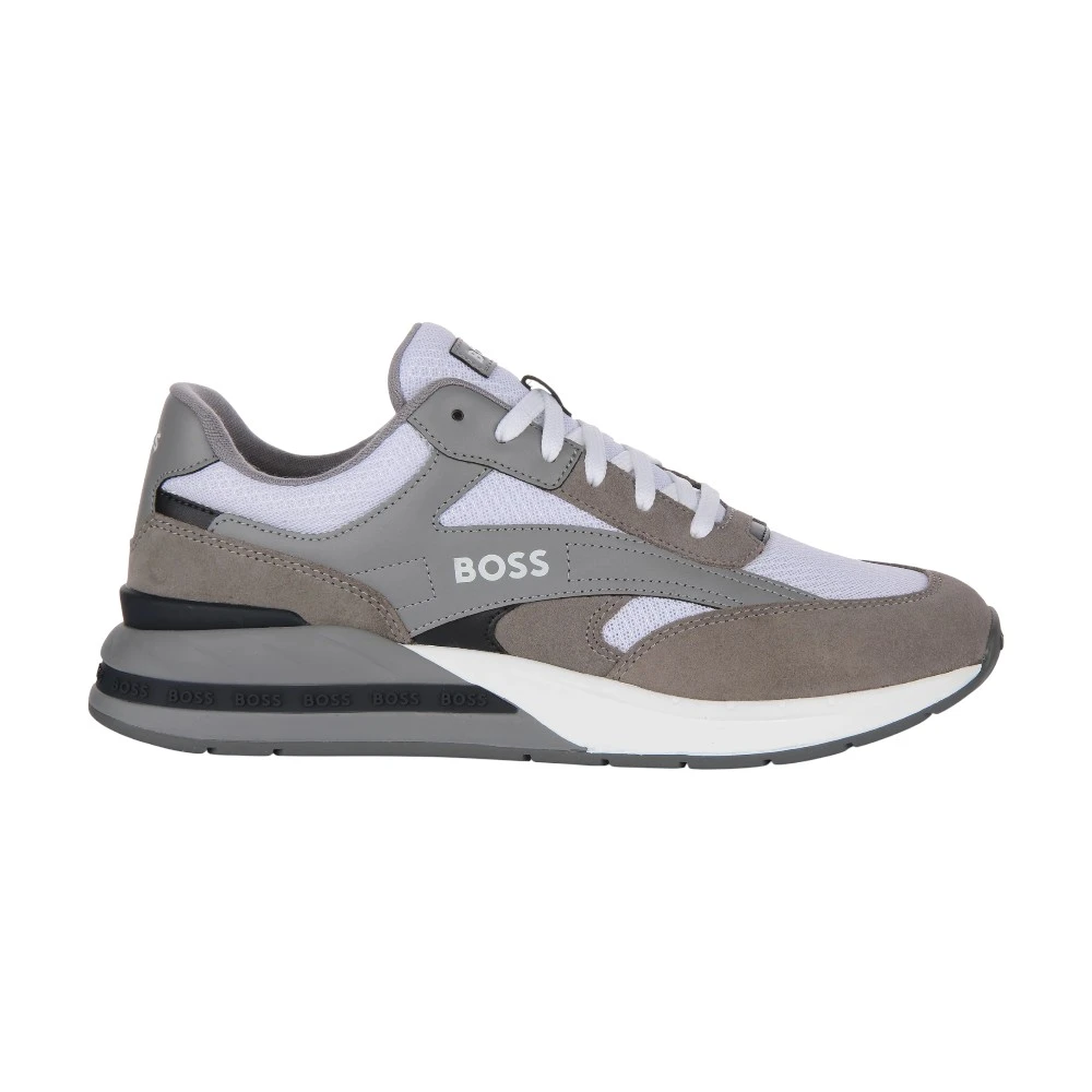Кроссовки Boss Kurt Runn — современное воплощение динамичного стиля и комфорта. Верх из комбинированной кожи и сетчатых вставок обеспечивает лёгкость и отличную вентиляцию, а подошва из EVA и резины гарантирует надёжное сцепление и амортизацию при каждом шаге. Противоскользящая структура делает модель практичной для активного ритма города. Фирменные логотипы BOSS подчёркивают узнаваемый характер бренда и придают образу завершённость и уверенность.