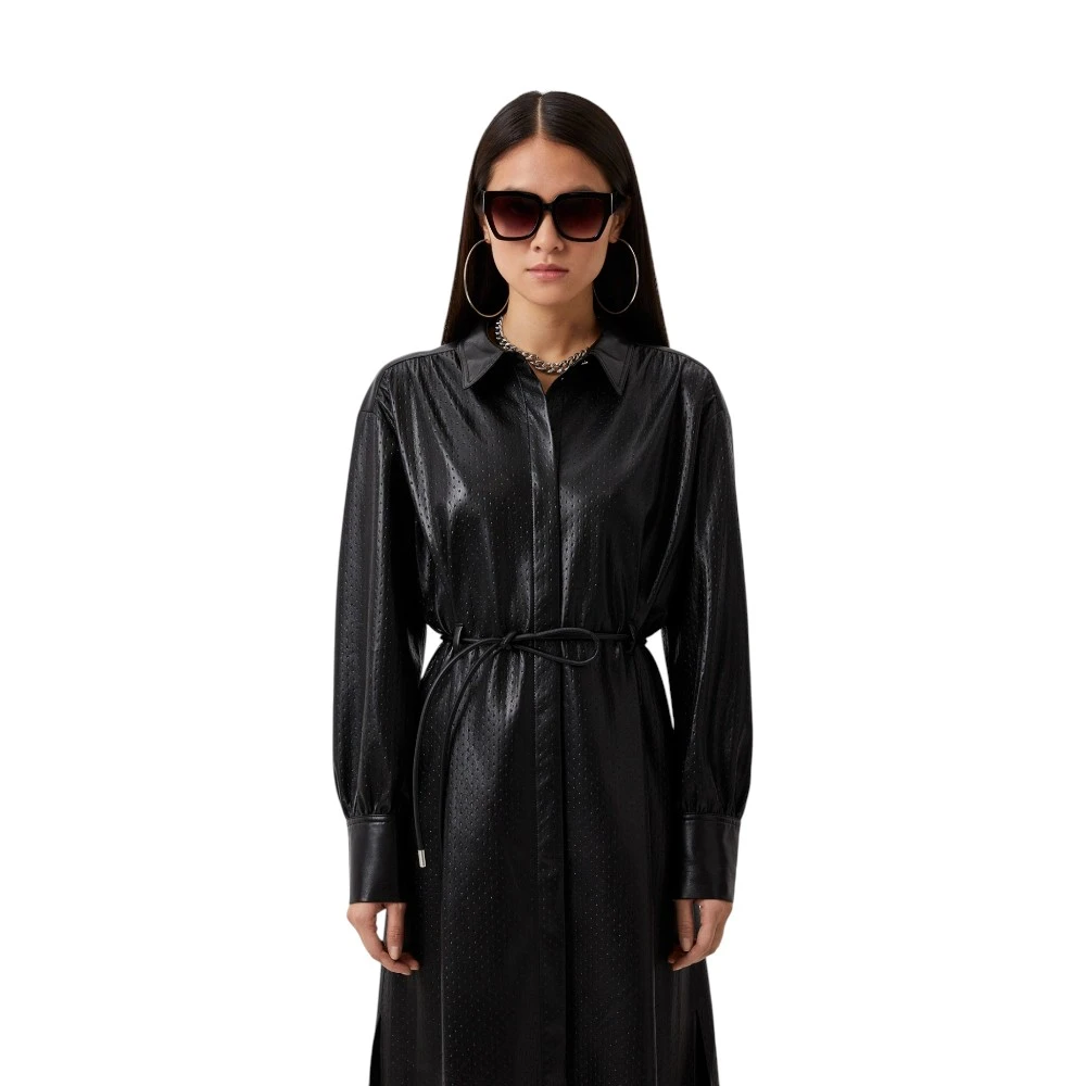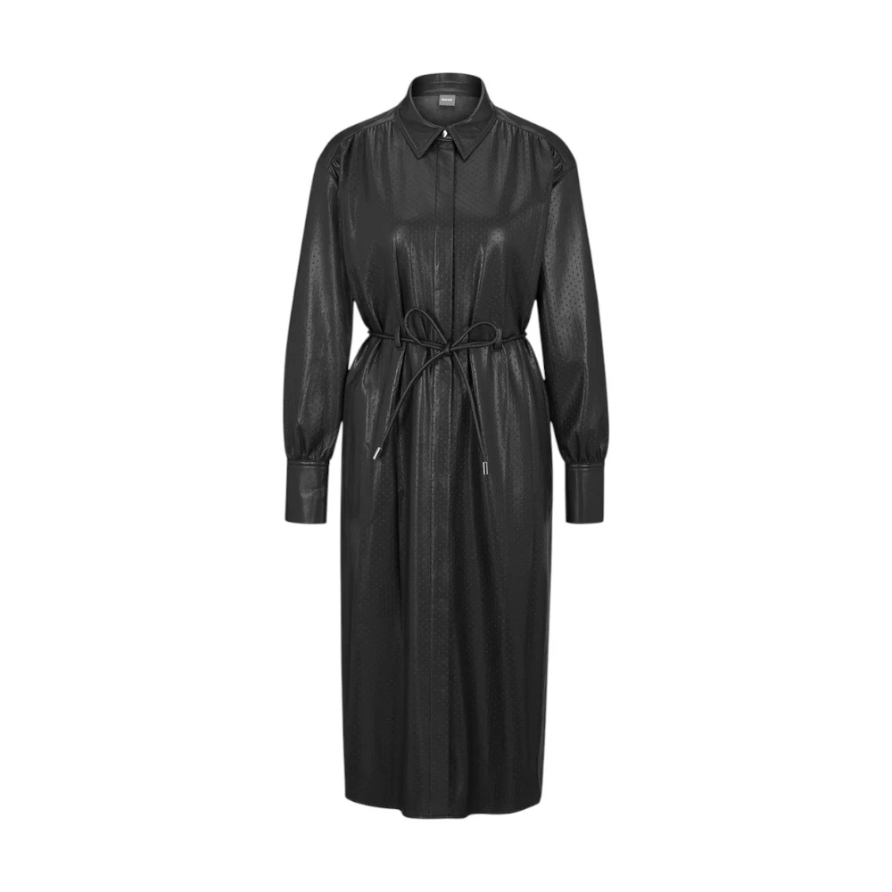 Платье Boss Dibanora — воплощение современного стиля и уверенной женственности. Модель выполнена из мягкой эко-кожи, отличающейся благородной фактурой и комфортом в носке. Свободный крой с акцентом на талии создаёт утончённый силуэт, а боковые разрезы и серебристые детали добавляют изысканности. Универсальный дизайн легко сочетается как с элегантными туфлями, так и с брутальными ботинками, позволяя создавать выразительные образы для любого случая.