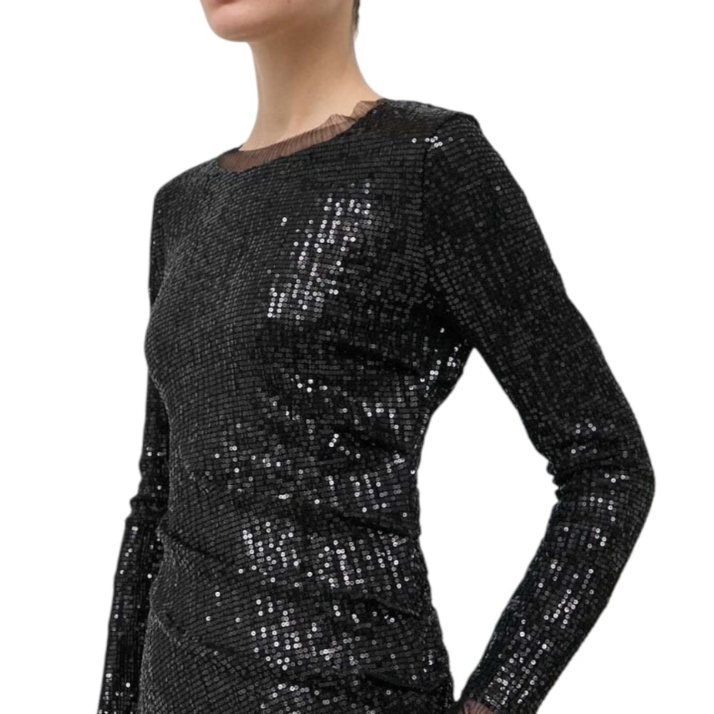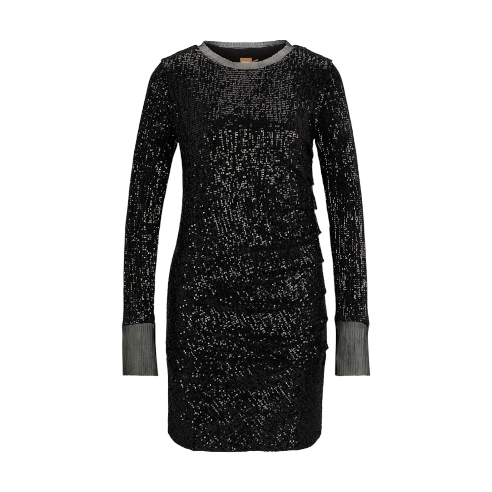 Платье Boss Edegra — воплощение утончённой элегантности и уверенного стиля. Россыпь пайеток изысканно отражает свет, создавая эффектное сияние при каждом движении. Лаконичный крой подчёркивает женственность, сохраняя комфорт и свободу. Это платье станет идеальным выбором для вечерних выходов, где каждая деталь имеет значение.