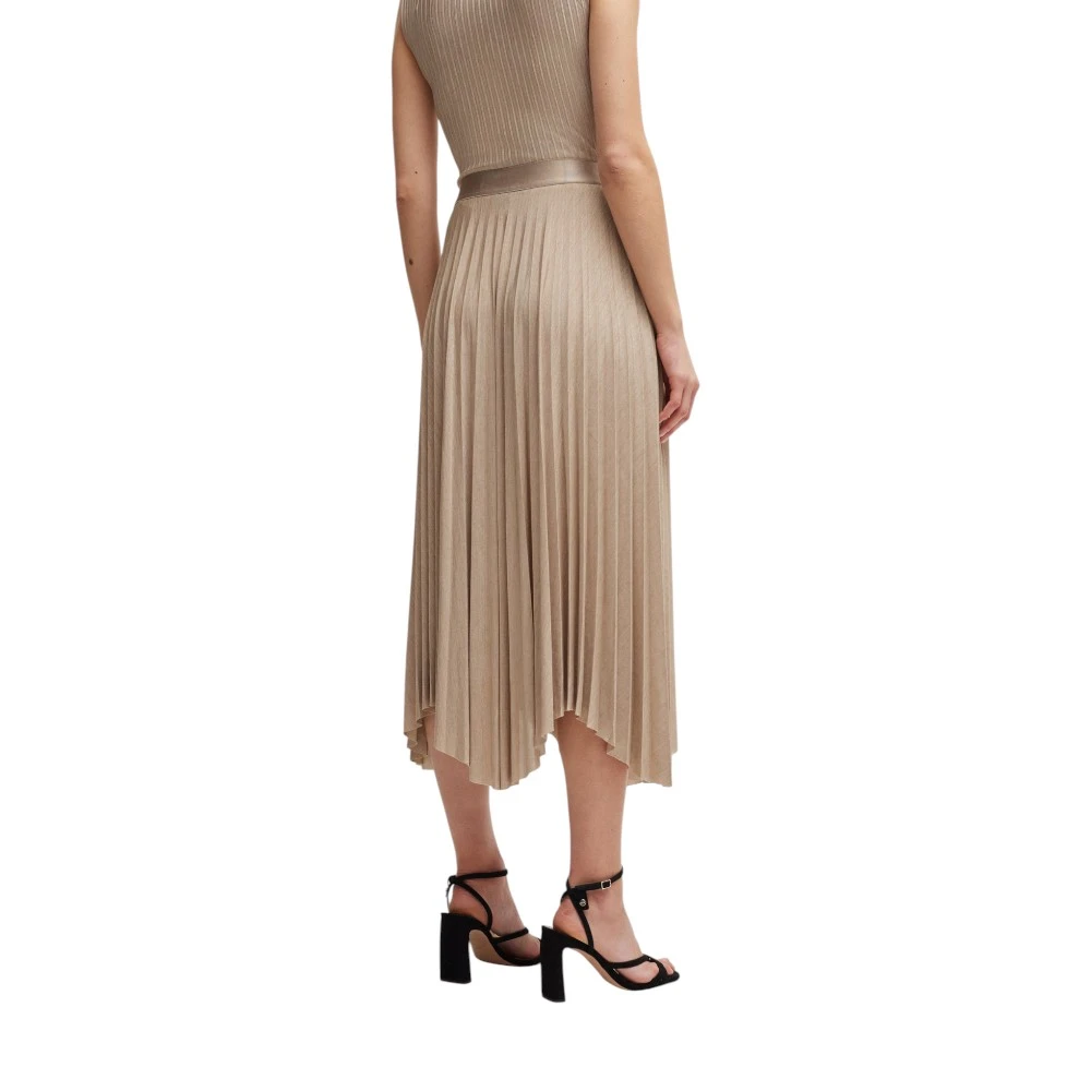 Юбка Boss Exala — это идеальное сочетание элегантности и комфорта для современной женщины. Расклешенная, плиссированная модель создают легкий и динамичный образ, подчеркивая женственность и утонченность. Высокая талия с резинкой и потайная молния обеспечивают удобную посадку. Изготовленная из тонкого, эластичного трикотажа, юбка дарит комфорт на протяжении всего дня, оставаясь стильным акцентом вашего гардероба. Отличный выбор для тех, кто ценит в своем образе как практичность, так и безупречный стиль.