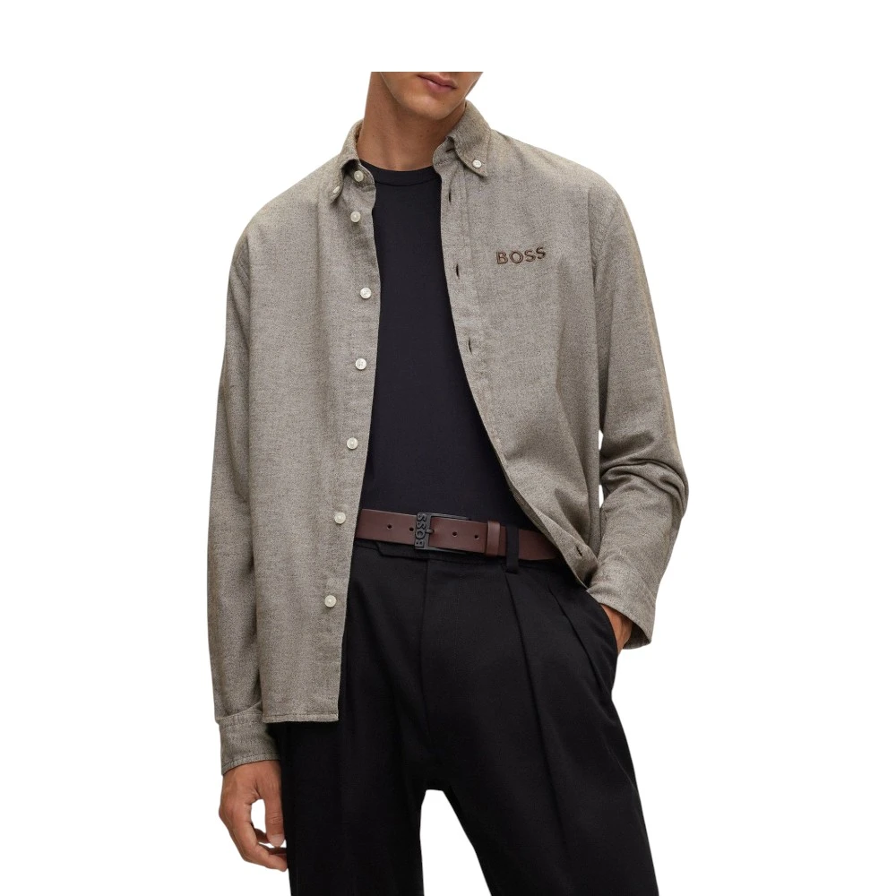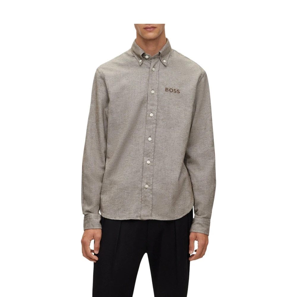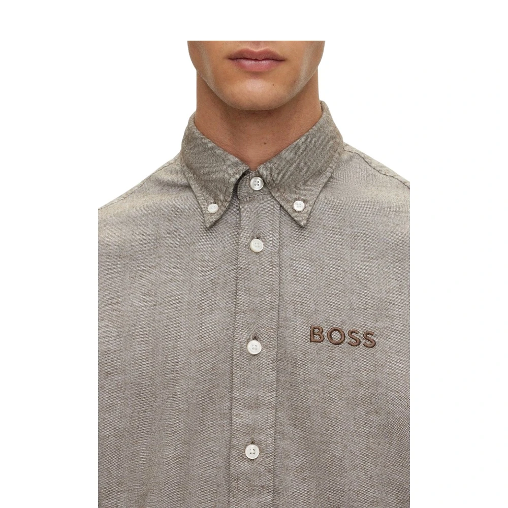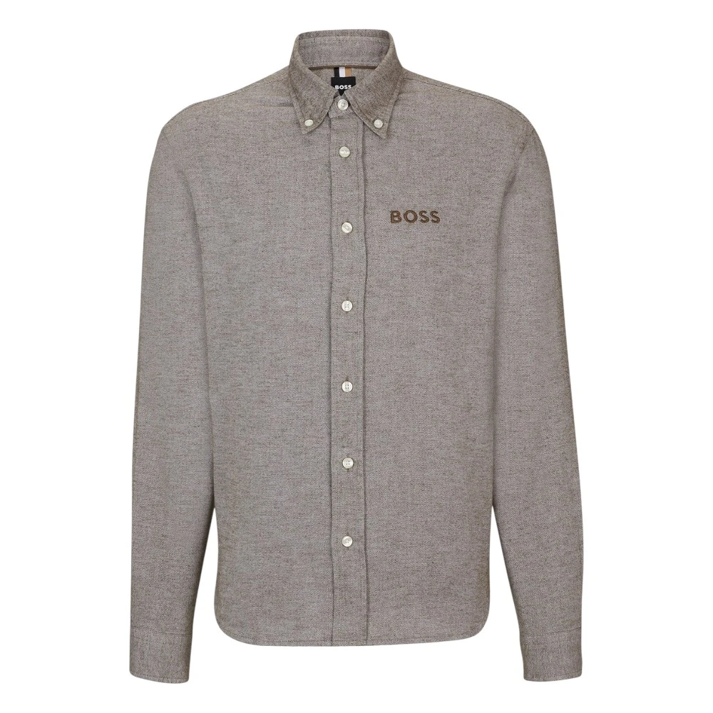 Рубашка с длинным рукавом свободного кроя из оксфордского хлопка с воротником на пуговицах и логотипом на груди от BOSS Menswear.