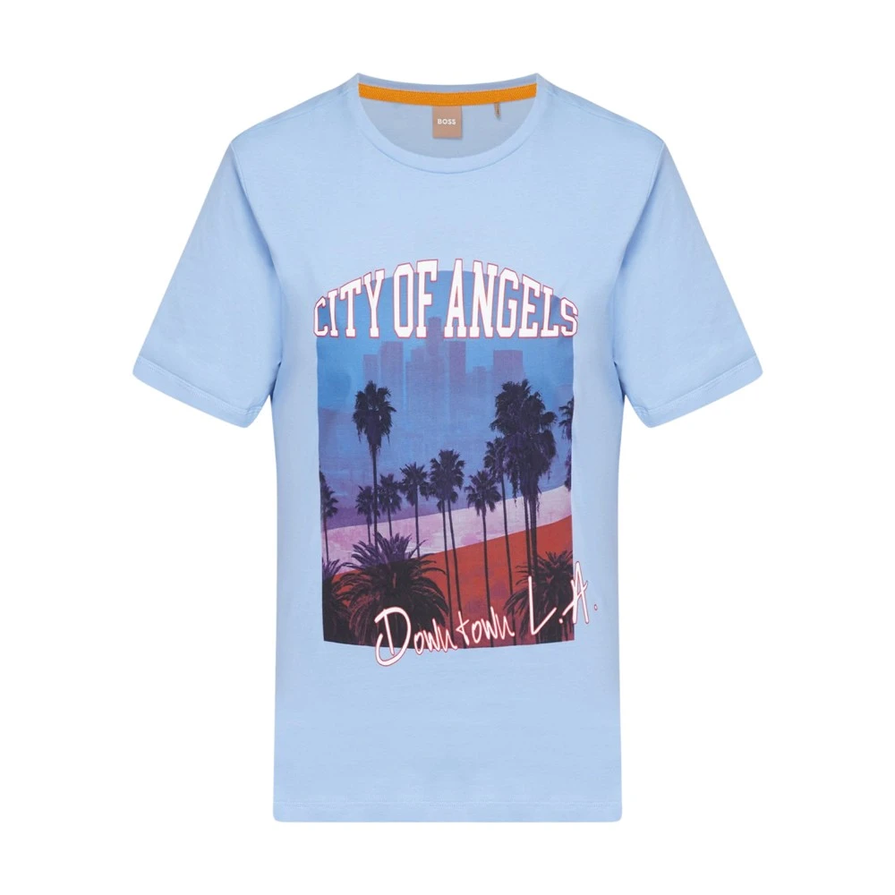 Футболка Boss Esummer Print — стильное напоминание о солнечных днях и свободе летнего настроения. Классический крой и мягкий хлопковый трикотаж обеспечивают комфорт, а яркий принт в духе Лос-Анджелеса добавляет образу лёгкости и непринуждённого шарма. Идеальный вариант для повседневных образов в тёплое время года.