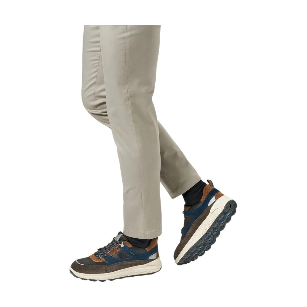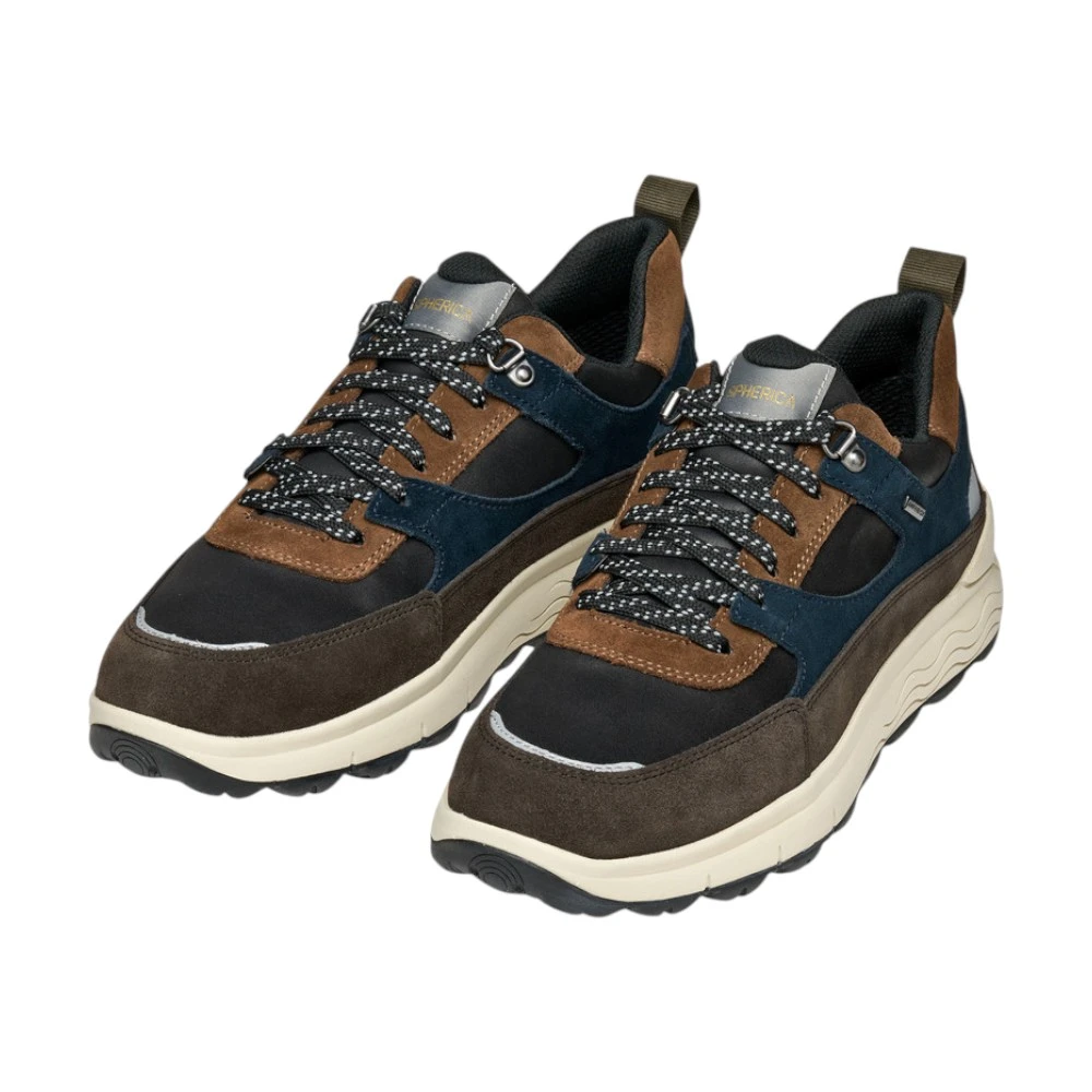 Кроссовки Geox Spherica 4X4 ABX Man — это сочетание динамичного дизайна, инновационных технологий и абсолютной защиты в любую погоду. Выполненные из изысканной комбинации тёмно-синей замши и вощёной ткани, они создают элегантный и современный образ, который легко вписывается в ритм мегаполиса.