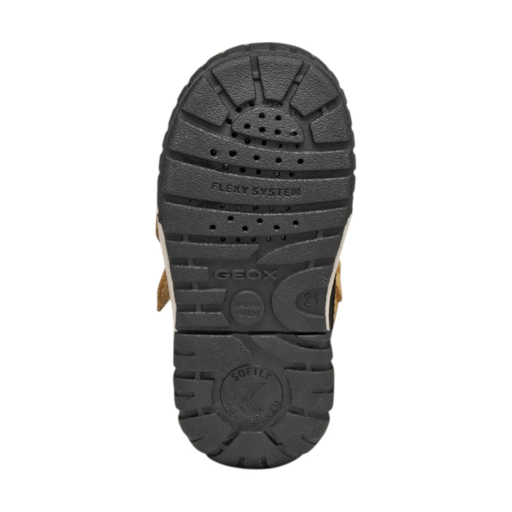 Ботинки Geox Omar Baby — надежные спутники первых открытий вашего малыша. Прочная кожа и замша в черно-жёлтой гамме сочетаются с удобной застёжкой для быстрого надевания и усиленной защитой носка и пятки. Водонепроницаемый верх и «дышащая» подошва Geox сохраняют ножки сухими даже в дождь, а тёплая шерстяная подкладка надёжно защищает от холода. Гибкий протектор Flexy System дарит свободу движений, превращая каждую прогулку в удовольствие.