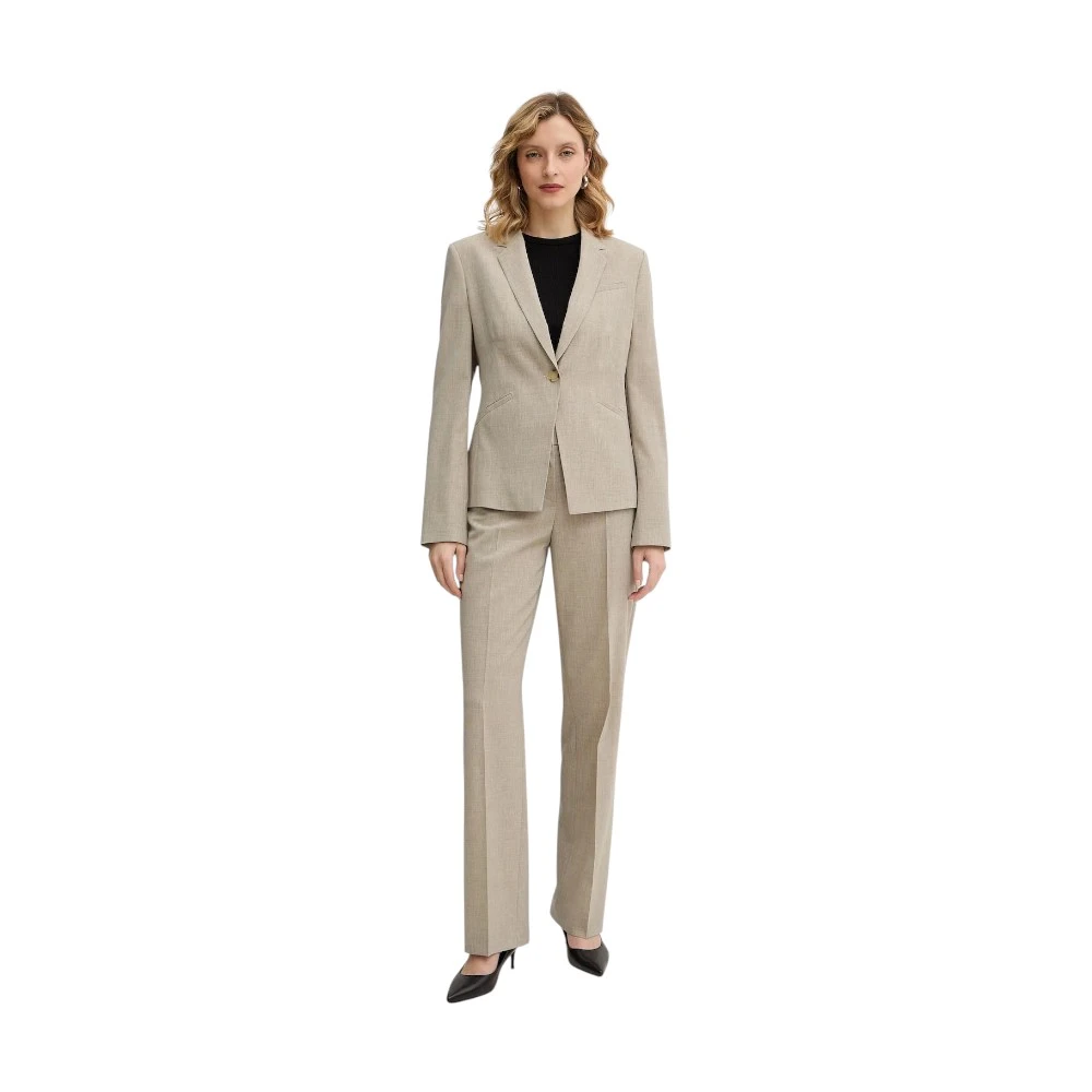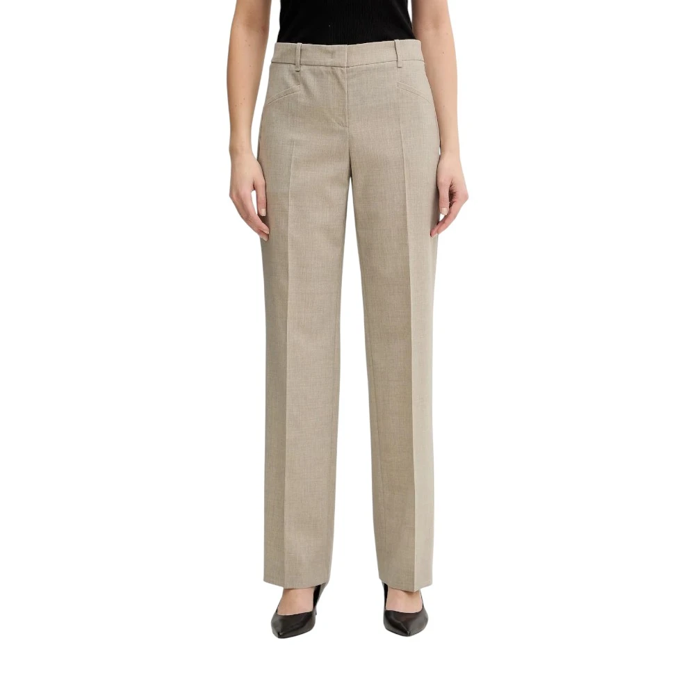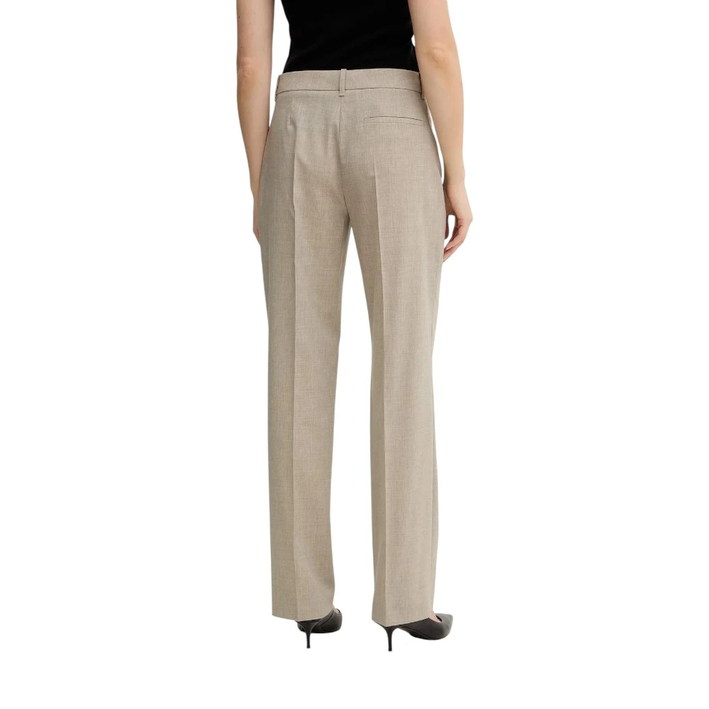 Женские брюки Boss Tilda9 — уверенный выбор для элегантного делового гардероба. Модель прямого свободного кроя выполнена из натуральной шерсти с лёгким меланжевым эффектом, что придаёт ткани выразительность и благородство. Материал отличается мягкостью, естественной эластичностью и высокой долговечностью, обеспечивая комфорт в течение всего дня. Застёжка на молнию, пуговицу и крючок формирует аккуратную посадку, накладные боковые карманы добавляют функциональности, а стрелки подчёркивают чёткую линию силуэта. Универсальная модель, которая без труда впишется в продуманный современный образ.