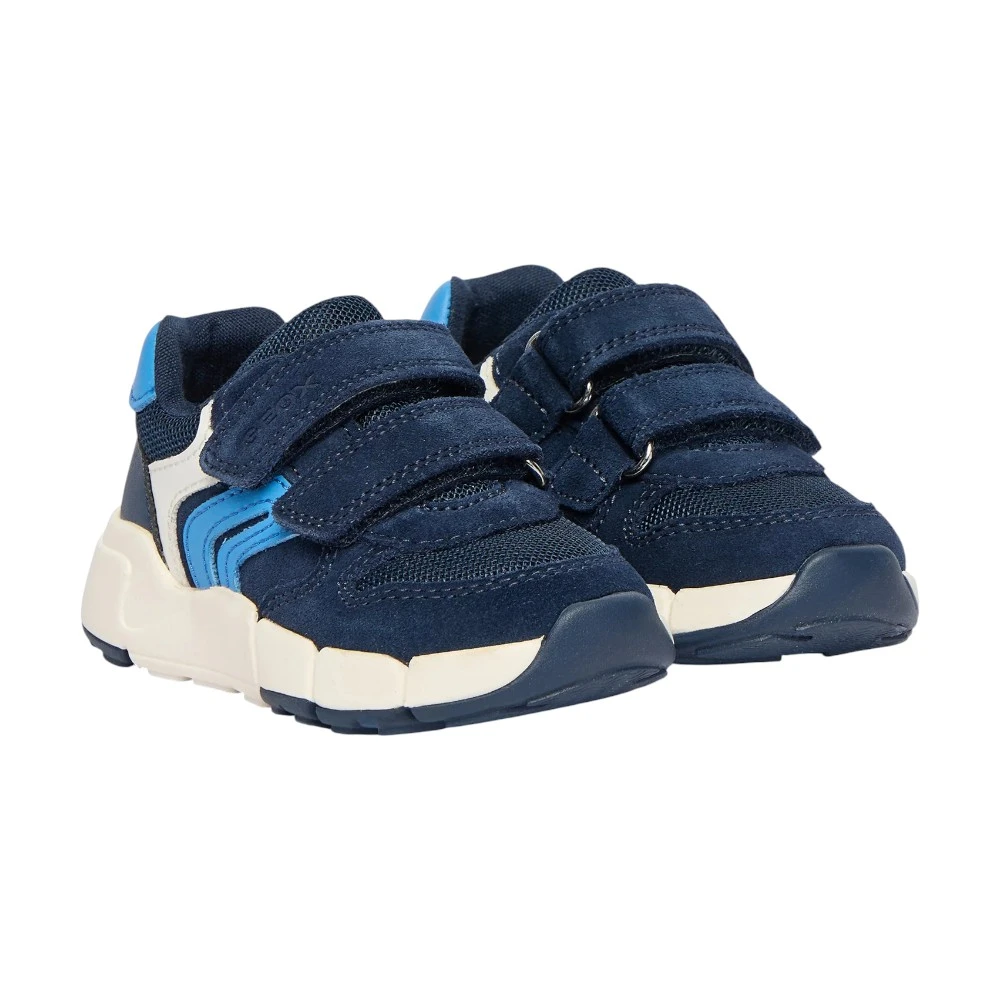 Верх выполнен из сочетания мягкой замши, прочного текстиля и износостойких синтетических материалов. Такая комбинация обеспечивает оптимальный баланс между комфортом, воздухопроницаемостью и устойчивостью к активной эксплуатации. Фирменная дышащая подошва Geox способствует естественной вентиляции стопы, помогая поддерживать ощущение сухости и комфорта в течение всего дня. Гибкая подошва поддерживает естественное движение стопы, а надёжная фиксация на липучках позволяет быстро и удобно обуваться без помощи взрослых. Кроссовки плотно сидят на ноге, не сковывают движения и подходят для активного образа жизни ребёнка.
