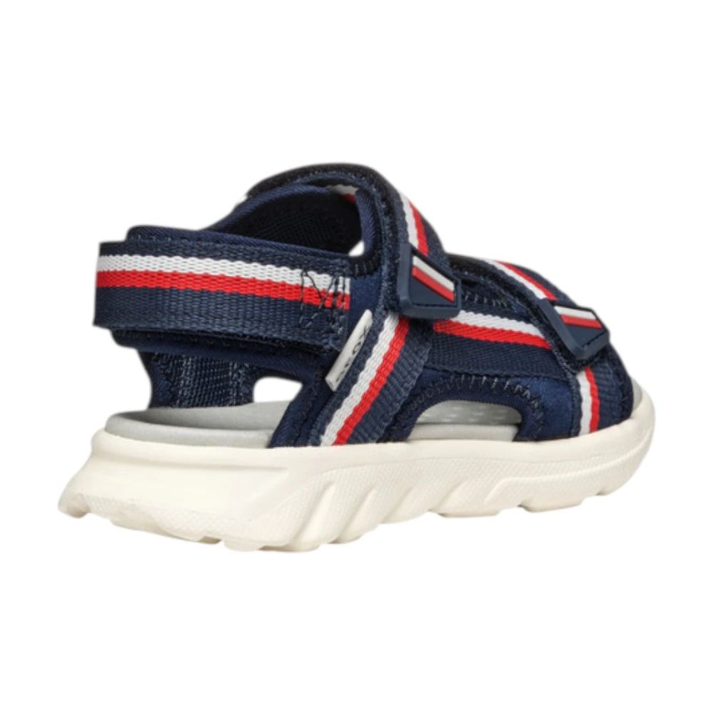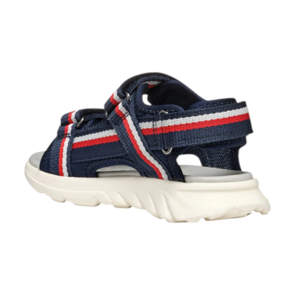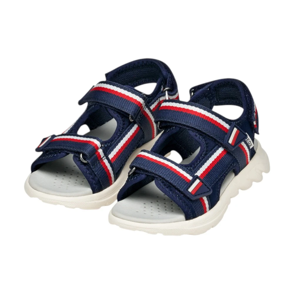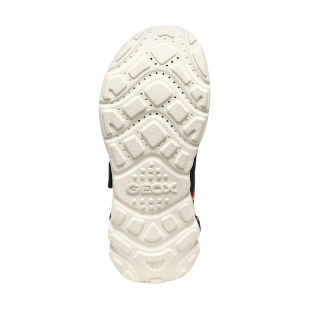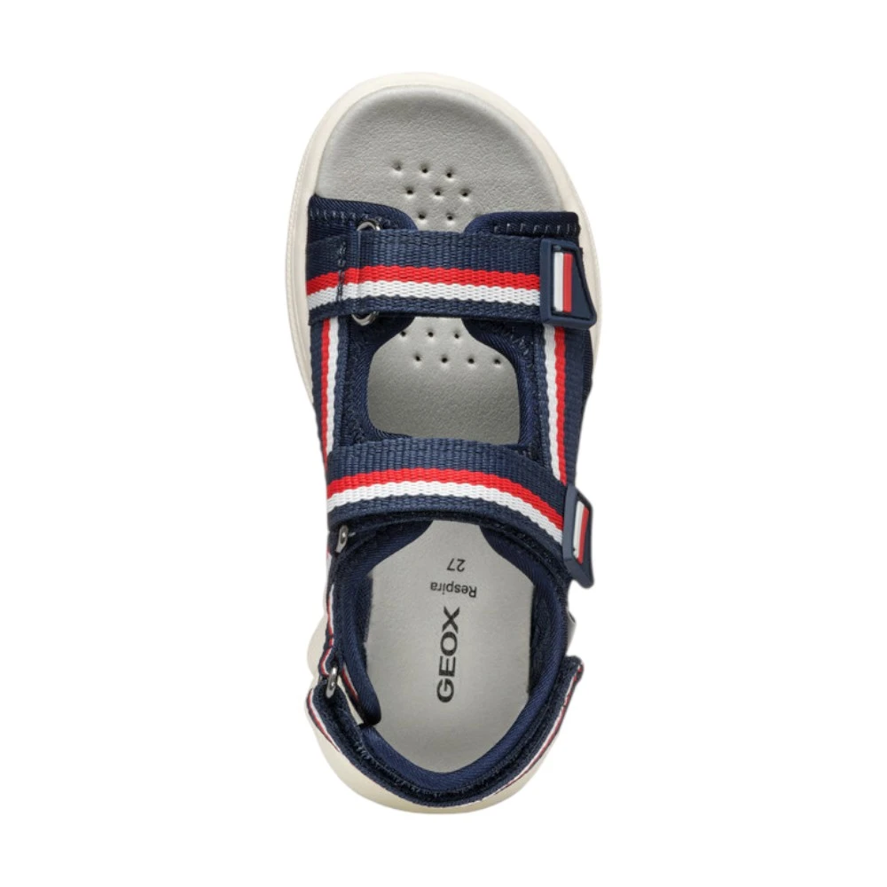 Верх сандалий выполнен из прочного полиэстера, устойчивого к износу и частым нагрузкам. Материал хорошо переносит активное использование, быстро сохнет и остаётся комфортным даже в жаркую погоду. Продуманная система ремешков позволяет надёжно зафиксировать стопу и точно отрегулировать посадку по ноге ребёнка. Открытая конструкция обеспечивает хорошую вентиляцию, а фирменная дышащая технология Geox помогает поддерживать комфортный микроклимат внутри обуви.