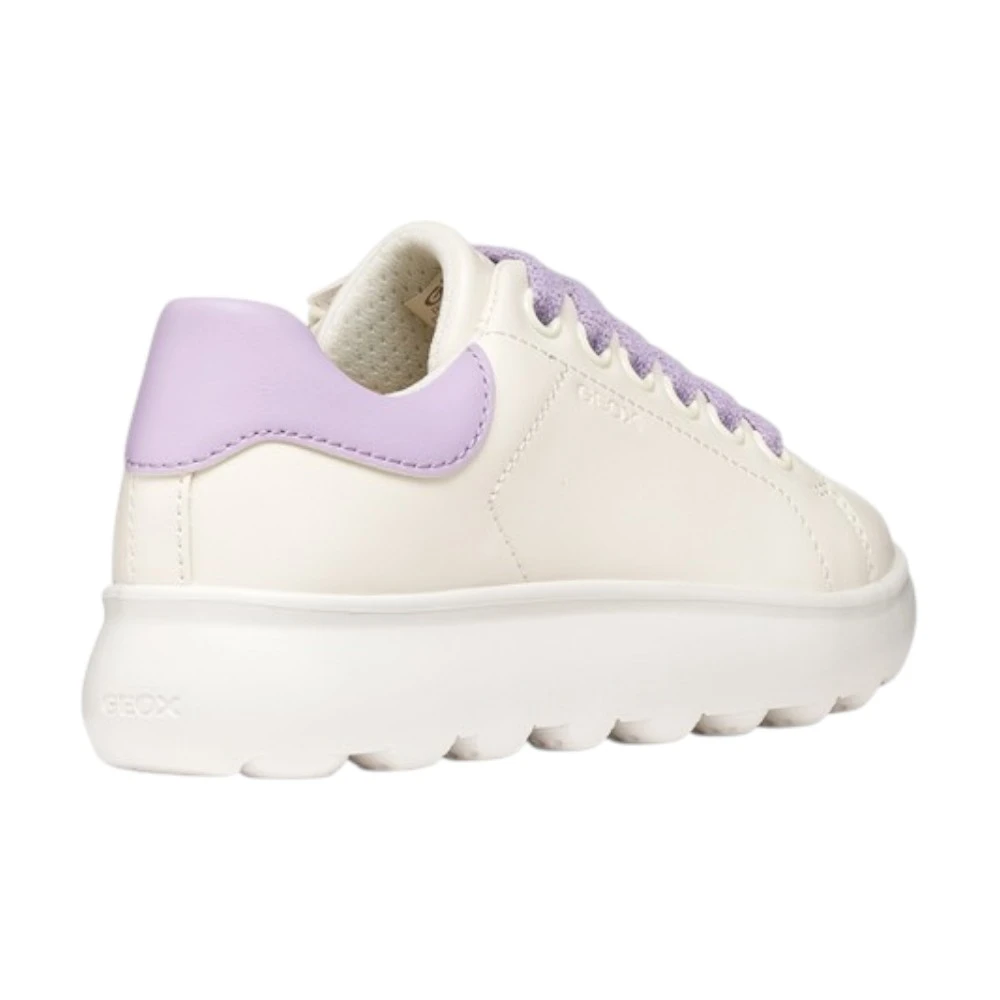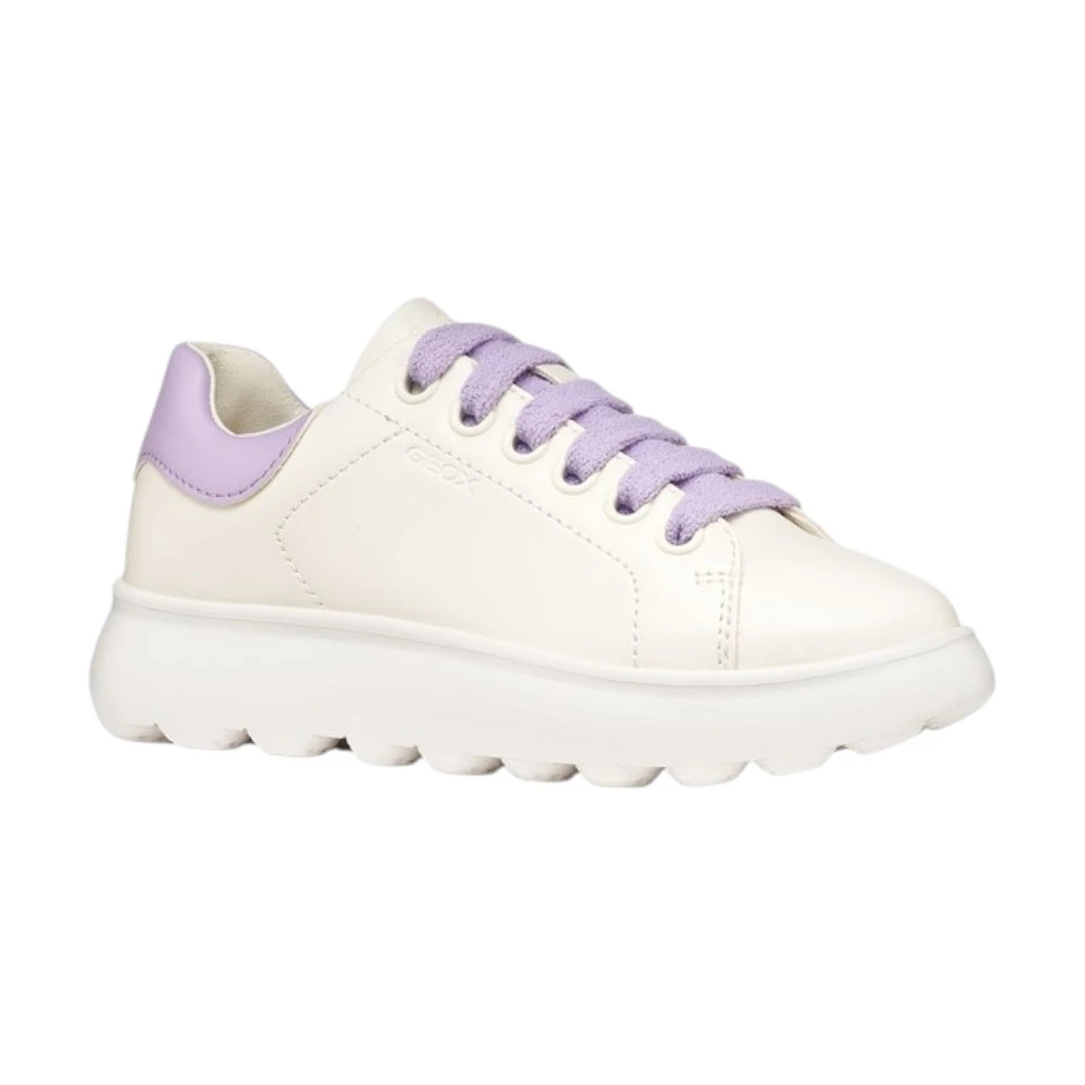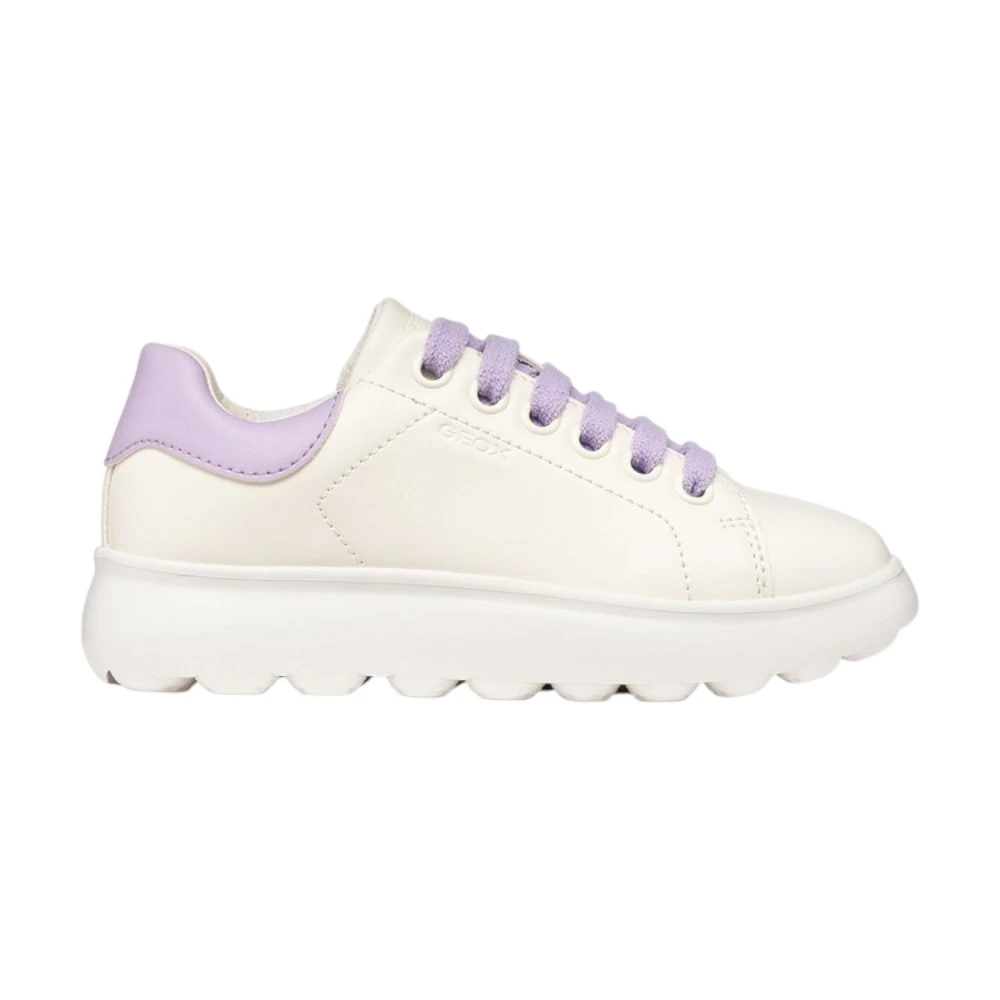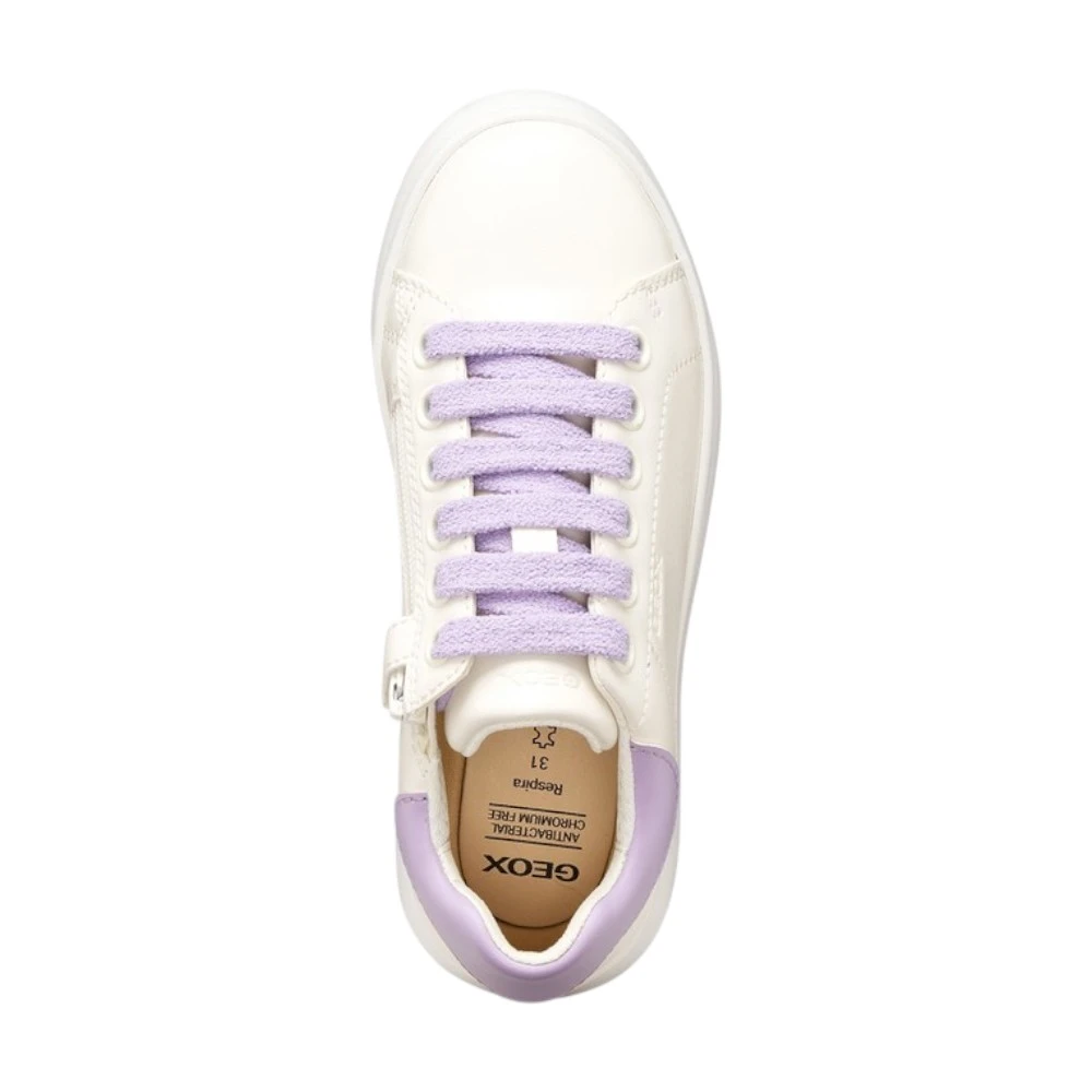 Лёгкая и гибкая подошва помогает сохранять естественный шаг, а фирменная дышащая технология Geox способствует поддержанию оптимального микроклимата внутри обуви. Белый цвет с нежными лиловыми акцентами выглядит свежо и аккуратно, легко сочетается с повседневной одеждой и школьными образами.