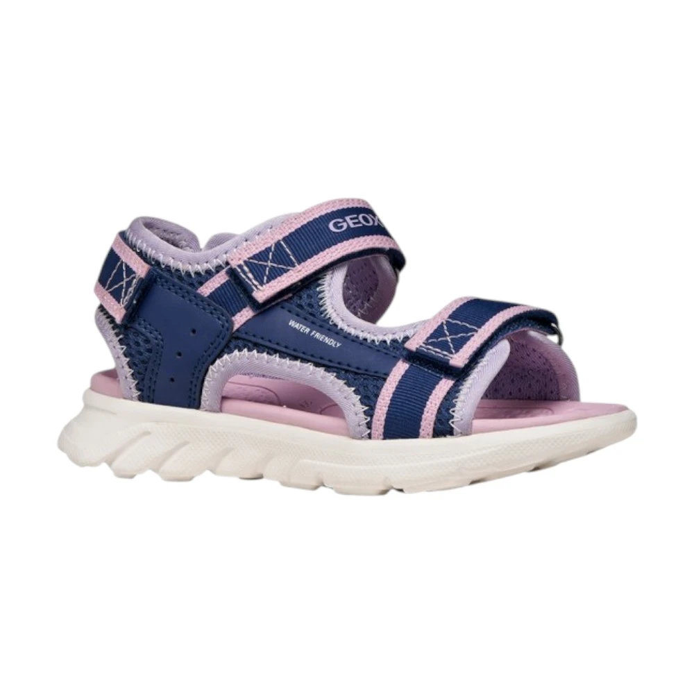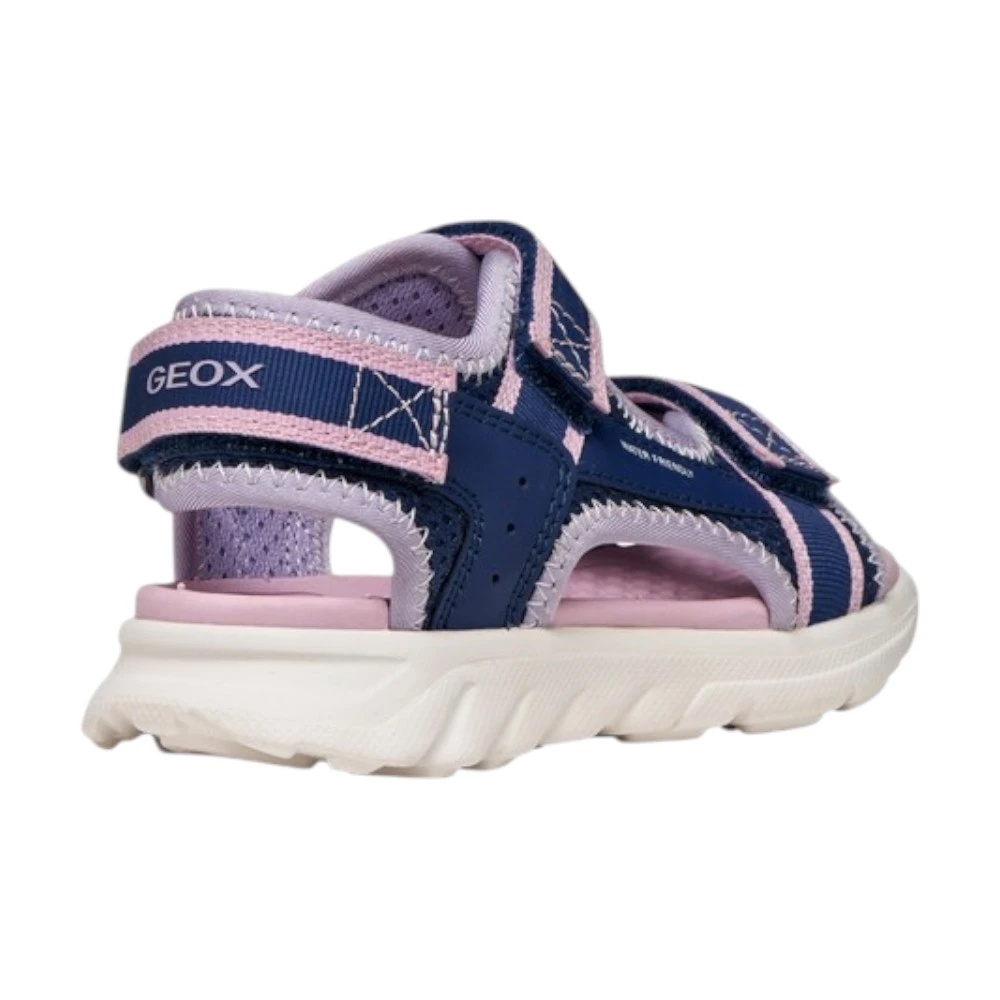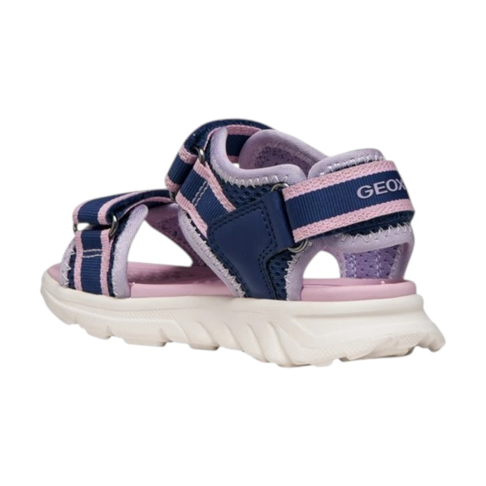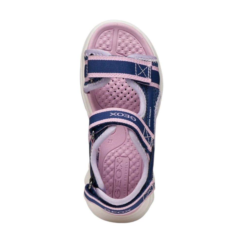 Лёгкая амортизирующая подошва поддерживает правильный шаг и снижает нагрузку на ноги во время длительных прогулок. Фирменная дышащая технология Geox помогает поддерживать комфортный микроклимат внутри обуви даже в жаркую погоду. Синий цвет с нежными розовыми акцентами выглядит свежо и универсально, легко сочетаясь с летним гардеробом.