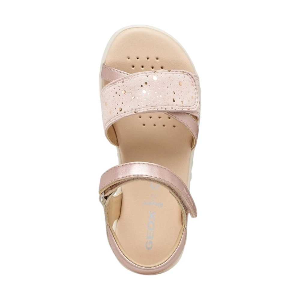 Детские сандалии Geox Sandal Haiti Girl в нежном розовом цвете созданы специально для летних прогулок, активных игр и комфортного отдыха. Эта модель подойдёт для девочек, которым важно чувствовать лёгкость и свободу движений, не жертвуя поддержкой и безопасностью стопы. Розовый оттенок с мягким блеском выглядит нарядно и аккуратно, легко сочетается с платьями, юбками и повседневной летней одеждой.