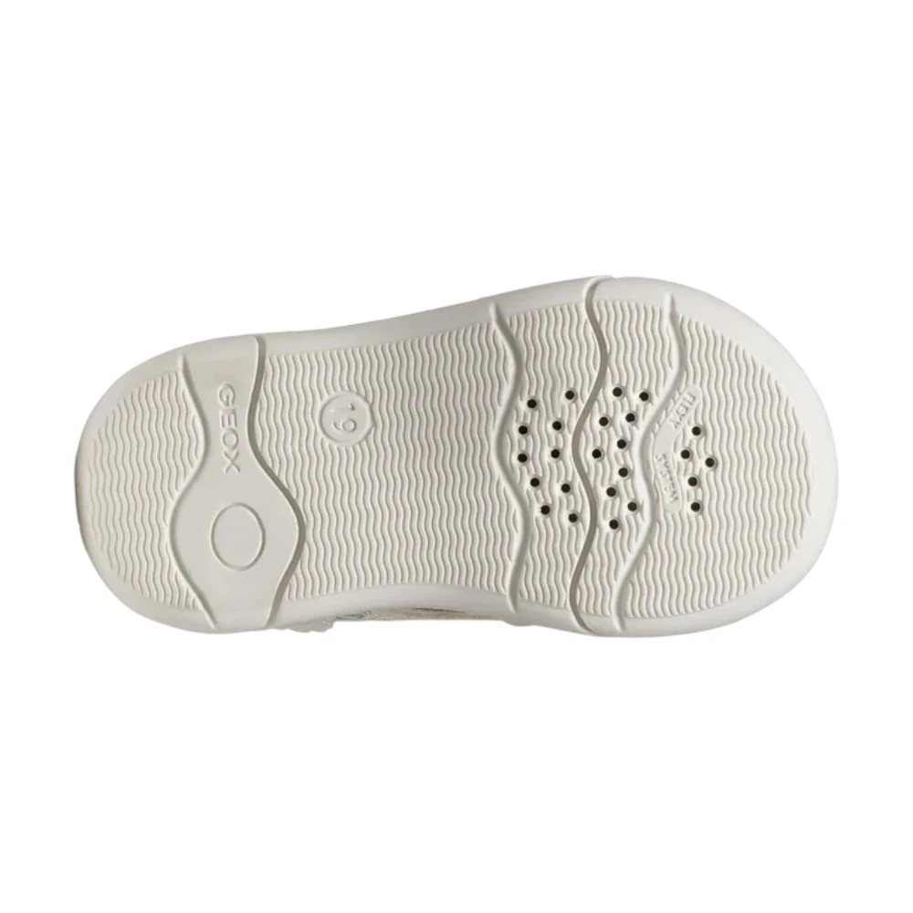Гибкая подошва поддерживает естественную походку и помогает снизить нагрузку при ходьбе. Фирменная дышащая технология Geox способствует поддержанию оптимального микроклимата внутри обуви, предотвращая перегрев и повышенную влажность. Модель отлично подходит для прогулок, поездок, детского сада и активного отдыха.