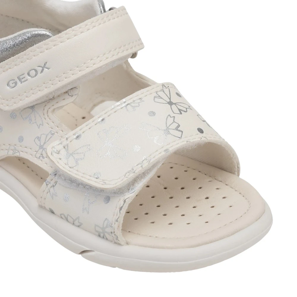 Сандалии для девочки Geox B Sandal Zapito в белом цвете созданы для тёплого сезона и активных летних прогулок. Эта модель сочетает лёгкость, удобство и продуманный дизайн, который особенно важен для детской обуви. Светлый оттенок выглядит аккуратно и нежно, легко сочетается с летними платьями, шортами и повседневными комплектами.