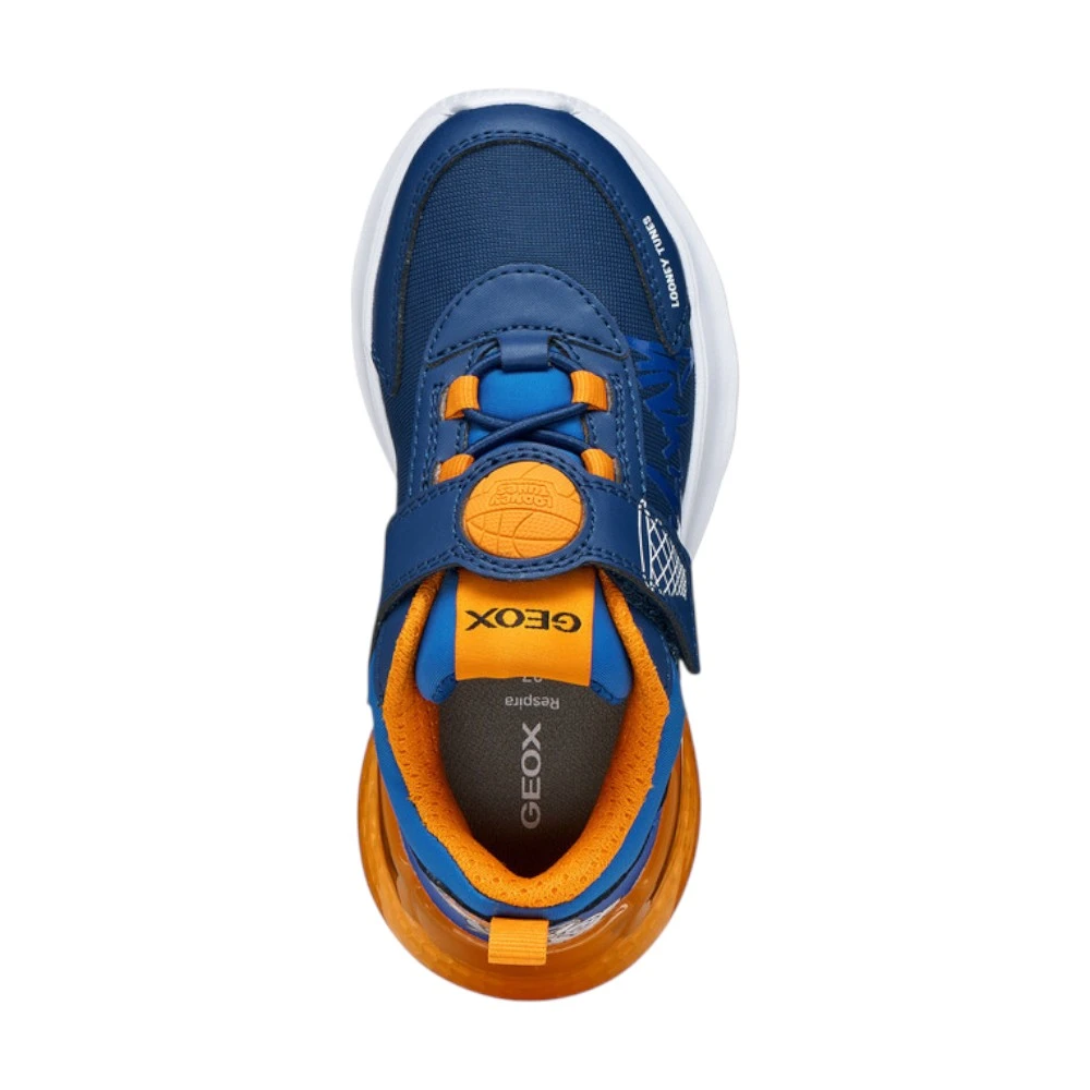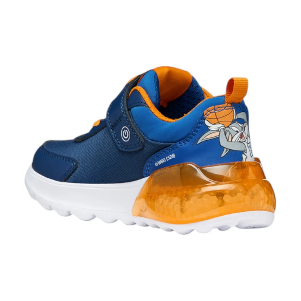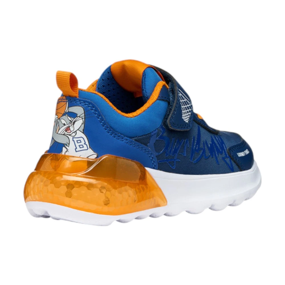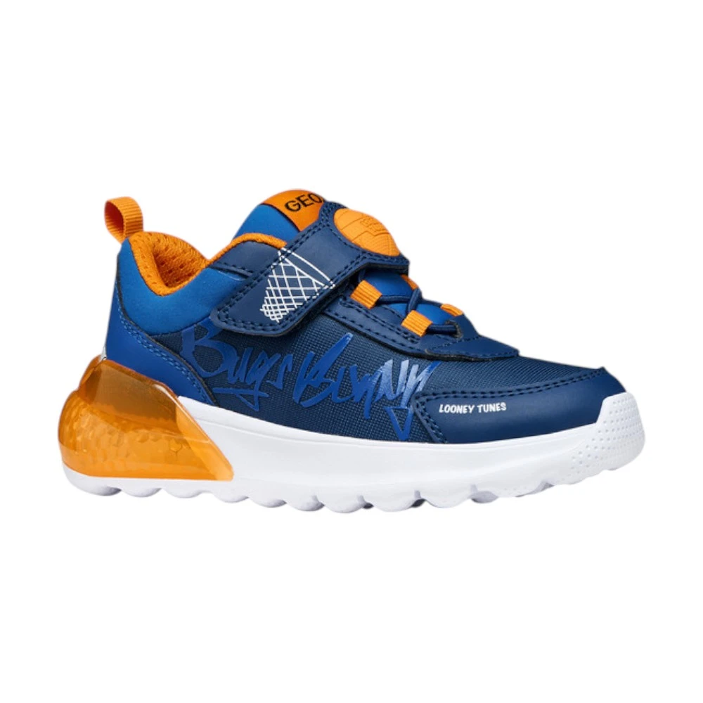 Детские кроссовки Geox Activart Illuminus Boy в сине-оранжевом цветовом решении — это динамичная модель, созданная для мальчиков, которые любят движение и яркие детали. Кроссовки разработаны в сотрудничестве с Warner Bros и украшены нашивками и графикой, посвящёнными культовому персонажу Looney Tunes — Багзу Банни, что придаёт модели игривый характер и делает её особенно привлекательной для ребёнка.