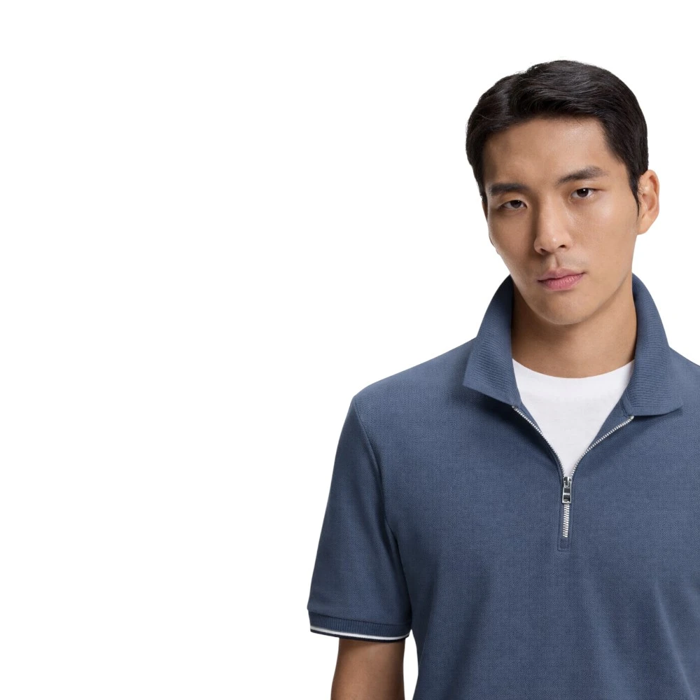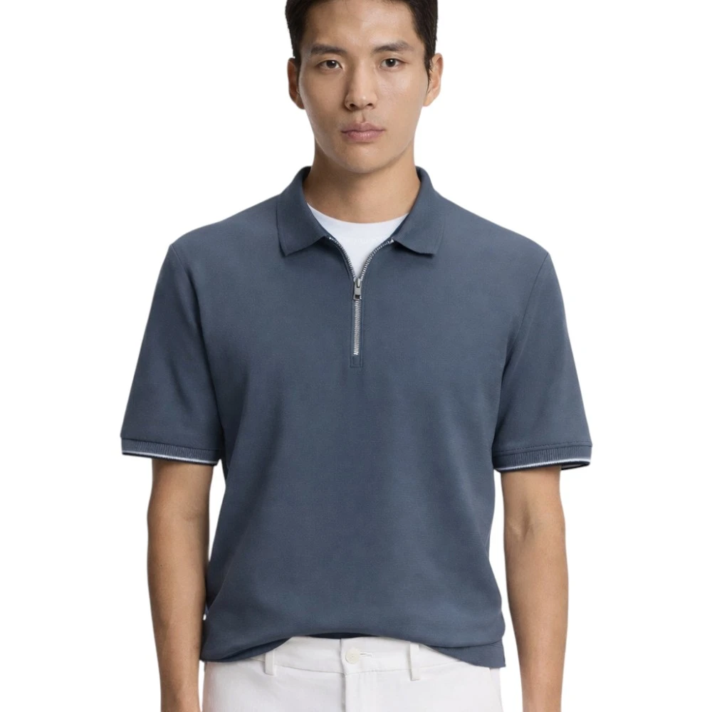 Синий цвет выглядит сдержанно и легко сочетается с классическими брюками, джинсами или светлыми чиносами. Аккуратный воротник и короткая молния добавляют современный акцент, сохраняя при этом лаконичный характер модели. Поло отлично подойдёт для офиса с нестрогим дресс-кодом, повседневных городских образов и поездок.