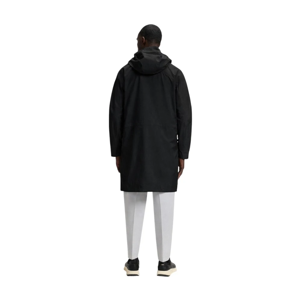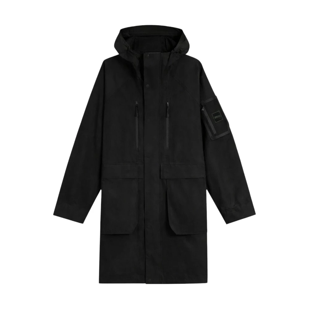 Модель дополнена капюшоном с подкладом в тон, застежкой на молнию и планкой, вместительными накладными карманами и дополнительными карманами на молнии для мелочей. Черный цвет подчеркивает строгость и универсальность образа, легко сочетаясь как с деловыми комплектами, так и с повседневной одеждой. Продуманный крой обеспечивает комфорт и свободу движений, а длина добавляет защита от ветра и прохлады.