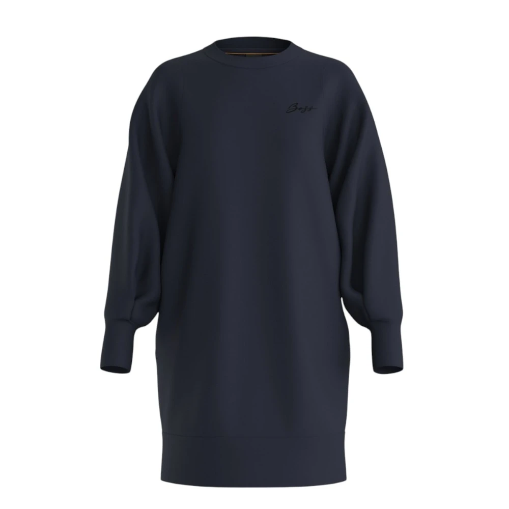 Женское платье Boss C_Elements в глубоком синем оттенке — это гармоничное сочетание современной эстетики, мягкости и функционального комфорта. Модель выполнена из инновационной ткани на основе полиэстера и модала с добавлением эластана, благодаря чему материал отличается гладкой текстурой, эластичностью и способностью красиво драпироваться по фигуре. Платье мягко облегает силуэт, обеспечивая свободу движений и комфорт в течение всего дня.
