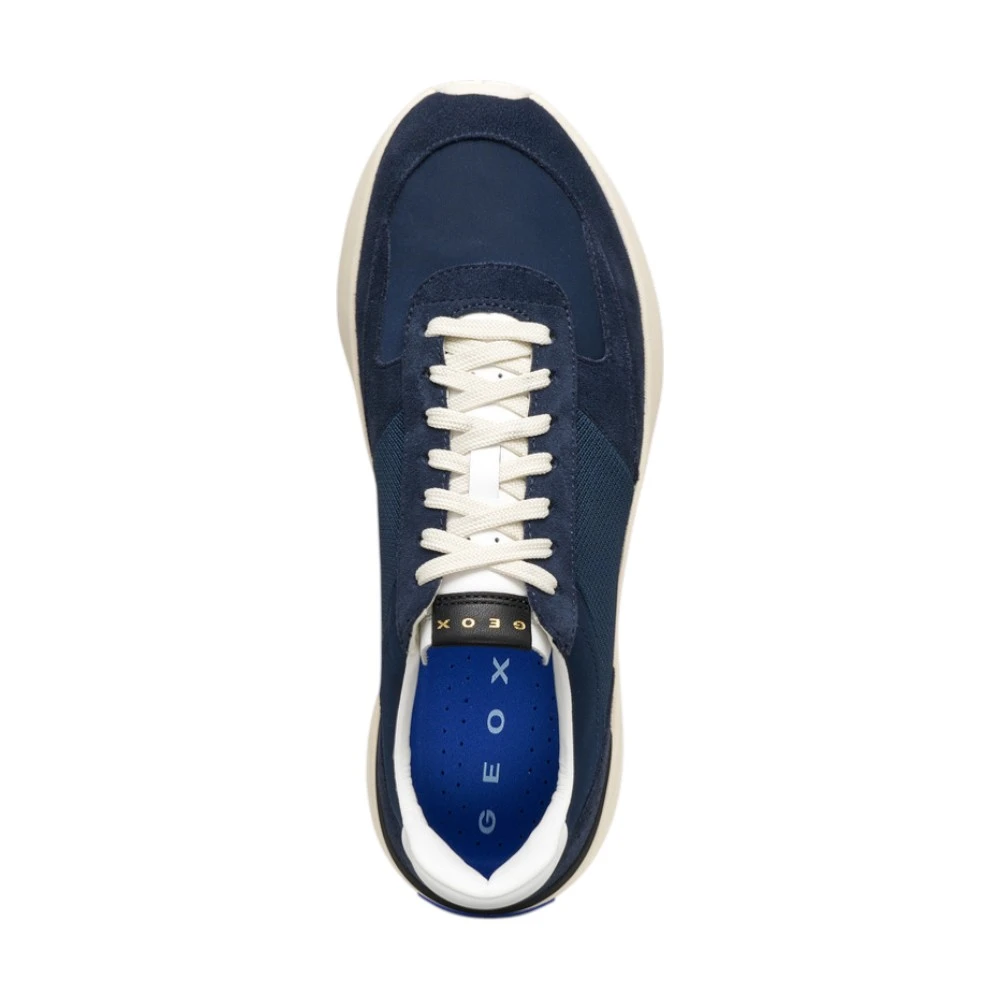Мужские кроссовки Geox Gxrn-01 Man в тёмно-синем цвете — практичная модель для тех, кто ценит комфорт и универсальность в повседневном стиле. Глубокий оттенок выглядит сдержанно и элегантно, легко комбинируется с джинсами, чиносами и спортивной одеждой. Контрастная светлая подошва подчёркивает силуэт и делает образ более выразительным.