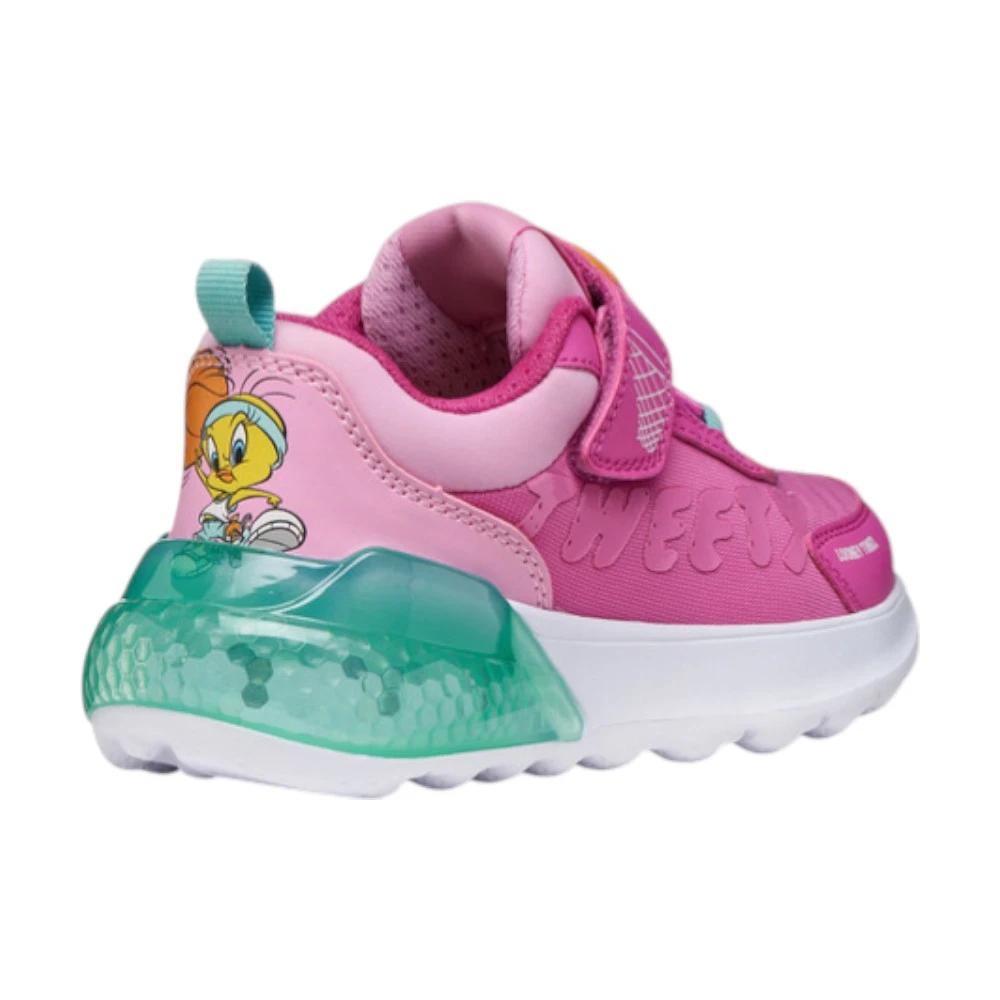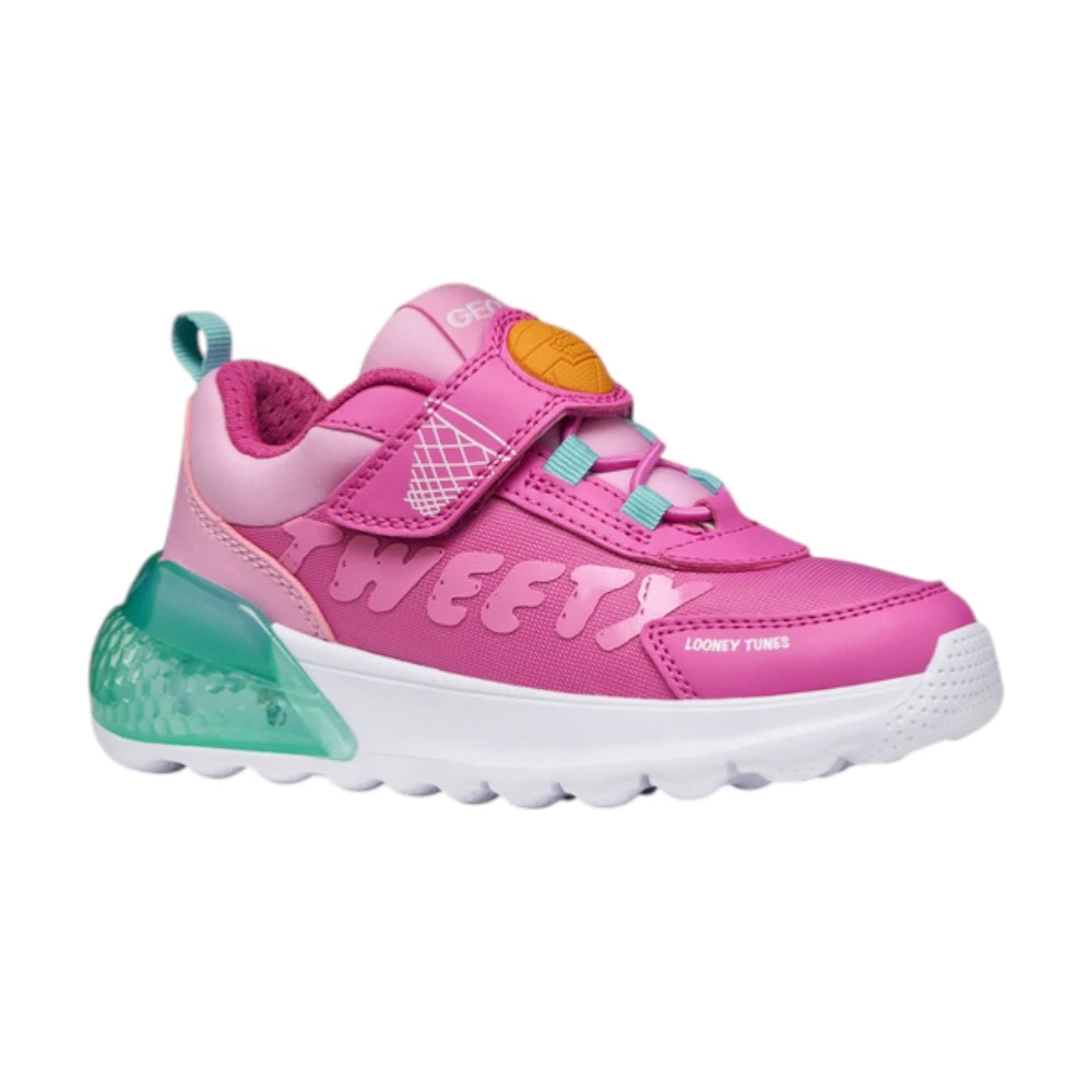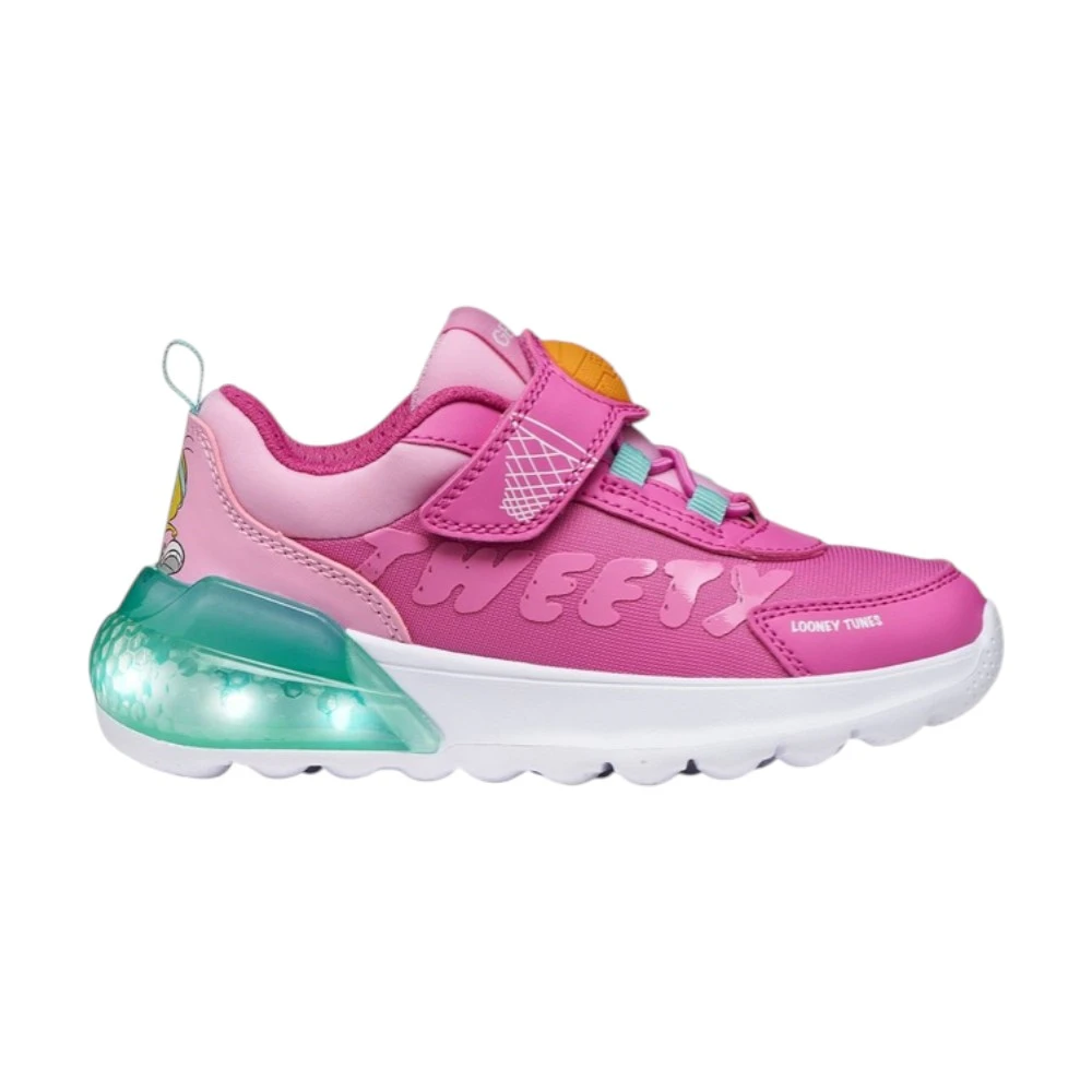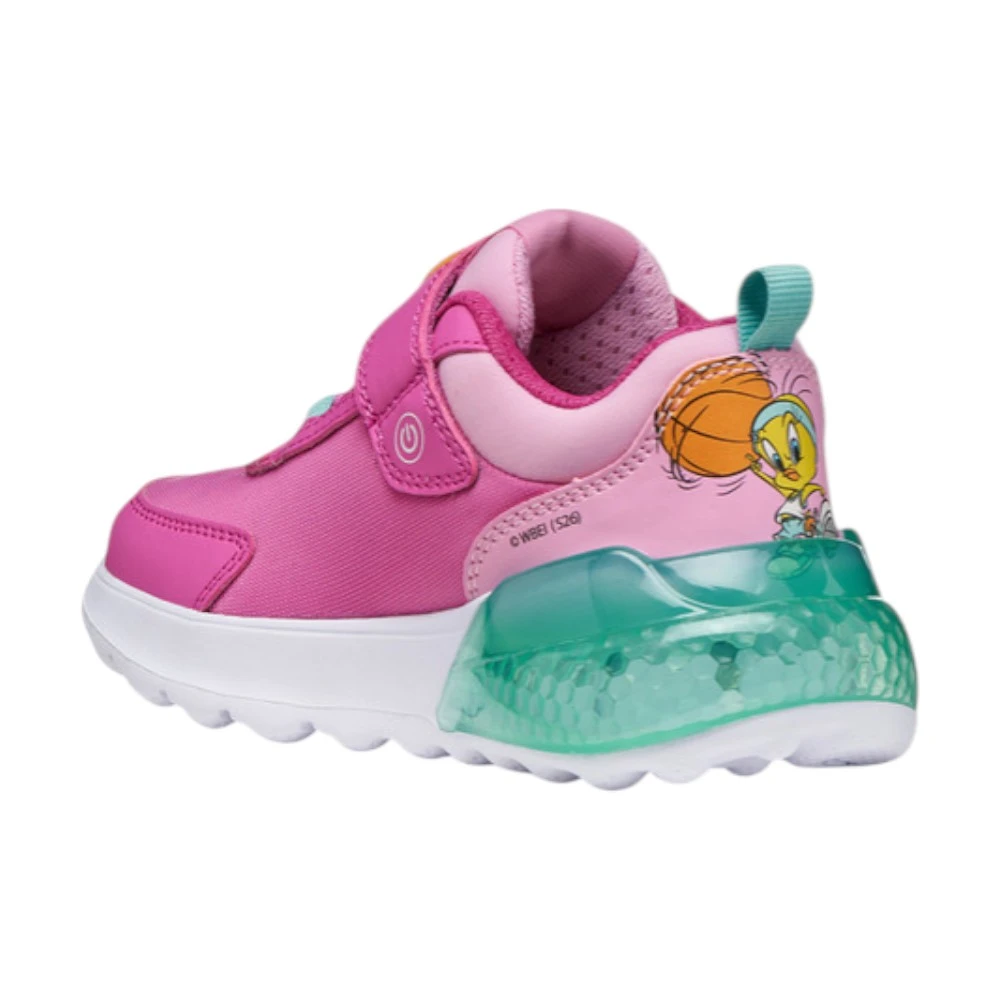 Кроссовки Geox Activart Illuminus для девочек выполнены в ярком розовом цвете и дополнены светящейся вставкой в области пятки. Модель выглядит эффектно и привлекает внимание благодаря динамичному дизайну и декоративным элементам. Лёгкая подошва с подсветкой добавляет образу игривости и делает каждую прогулку ещё интереснее.