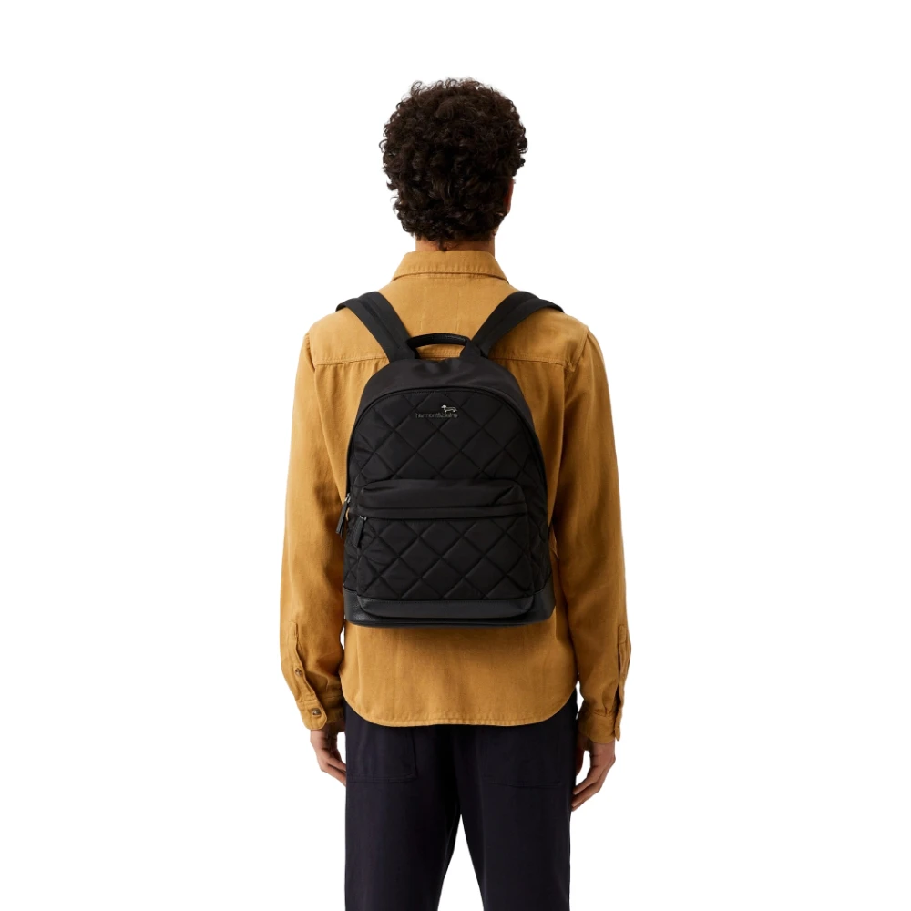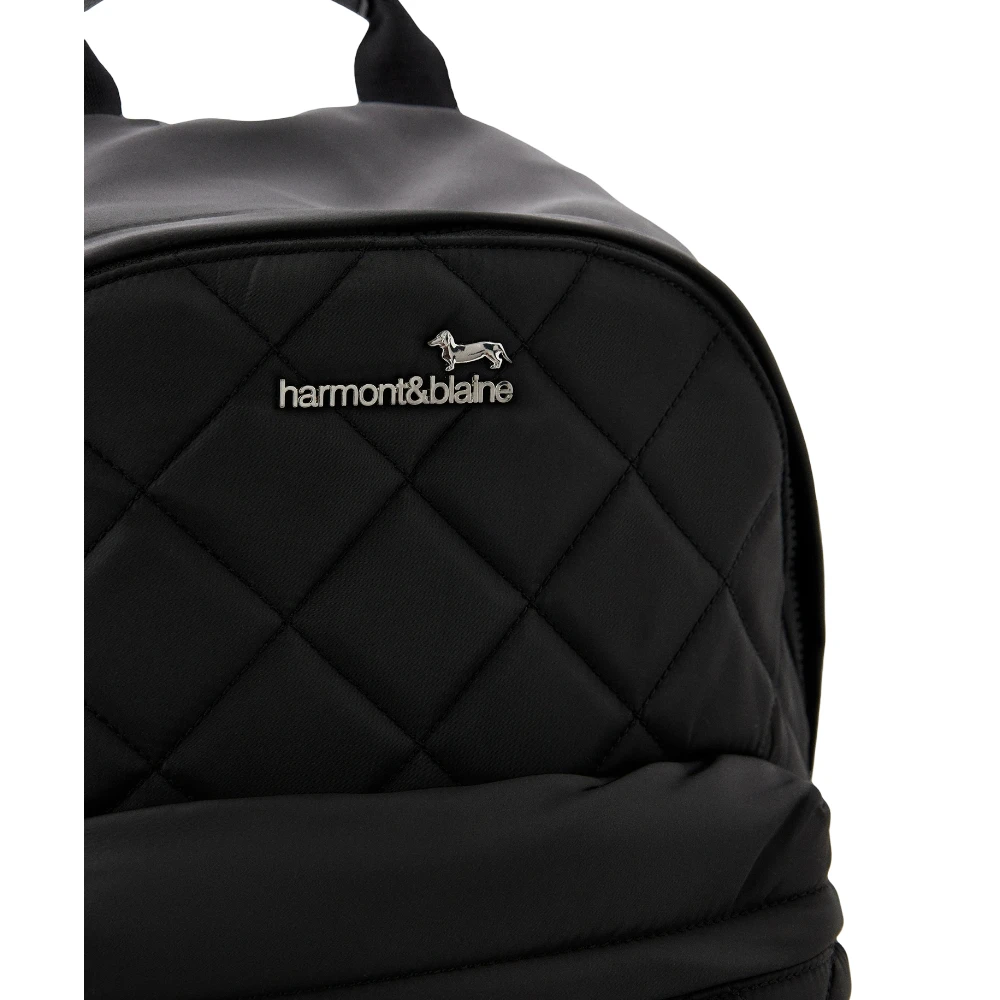 Стёганая текстура придаёт рюкзаку выразительный внешний вид и подчёркивает его премиальный характер. Минималистичный дизайн дополнен фирменным металлическим логотипом Harmont & Blaine, который делает аксессуар узнаваемым и стильным. Универсальный чёрный цвет позволяет легко сочетать рюкзак с любым гардеробом — от casual до городского делового стиля.