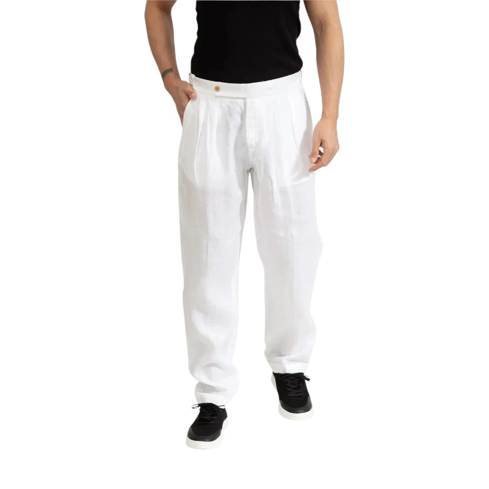 Льняная ткань делает брюки особенно удобными в теплую погоду. Материал хорошо пропускает воздух и обеспечивает ощущение легкости, благодаря чему модель отлично подходит для летнего сезона. Свободный и удобный крой обеспечивает комфортную посадку и свободу движений в течение всего дня.