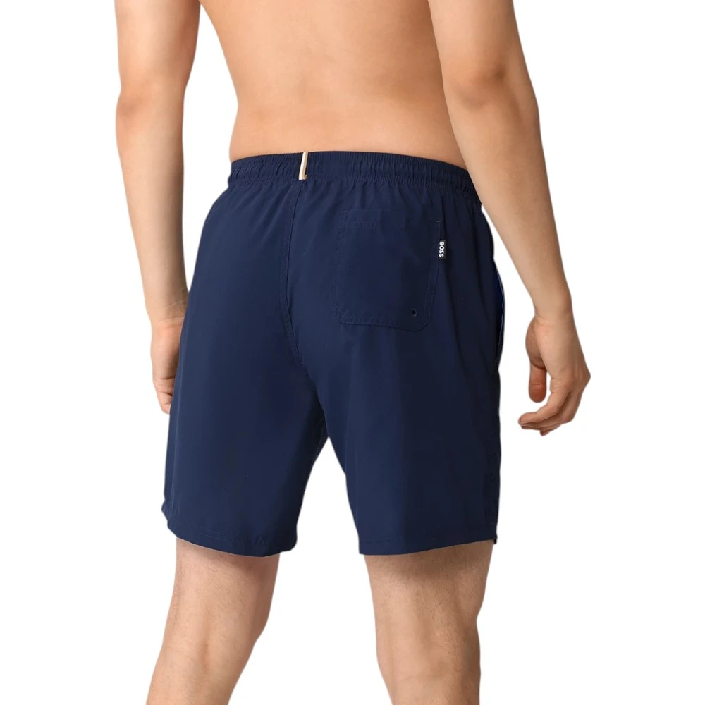 Мужские плавательные шорты BOSS Orca в тёмно-синем цвете — элегантная интерпретация пляжной классики в фирменной эстетике бренда. Модель выполнена из лёгкой быстросохнущей ткани, которая обеспечивает комфорт в течение всего дня — от плавания до отдыха у воды. Глубокий тёмно-синий оттенок придаёт образу сдержанность и универсальность, позволяя легко сочетать шорты с футболками, поло и пляжными рубашками в различных стилях.