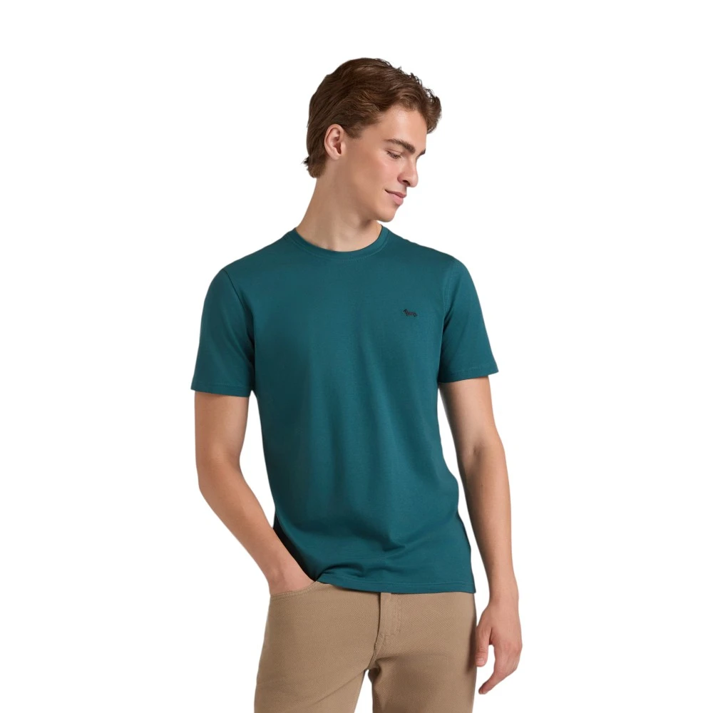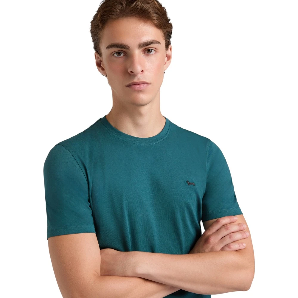 Мужская футболка Harmont & Blaine Cotton T-Shirt with Dachshund — стильная базовая модель, которая идеально вписывается в современный повседневный гардероб. Бирюзовый оттенок придаёт изделию свежий и выразительный характер, благодаря чему футболка легко становится ярким акцентом casual-образа. Универсальный дизайн позволяет сочетать модель с джинсами, шортами, чиносами или спортивными брюками, создавая комфортные и актуальные образы для города.