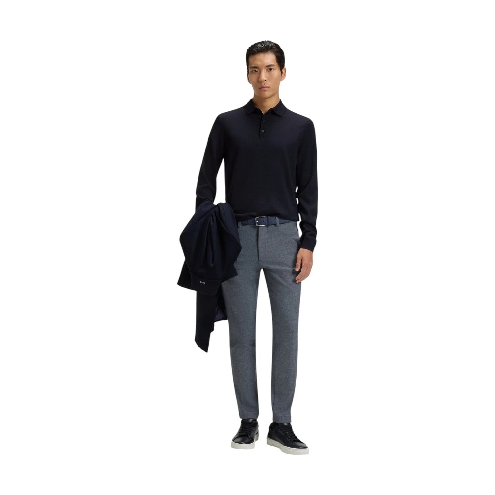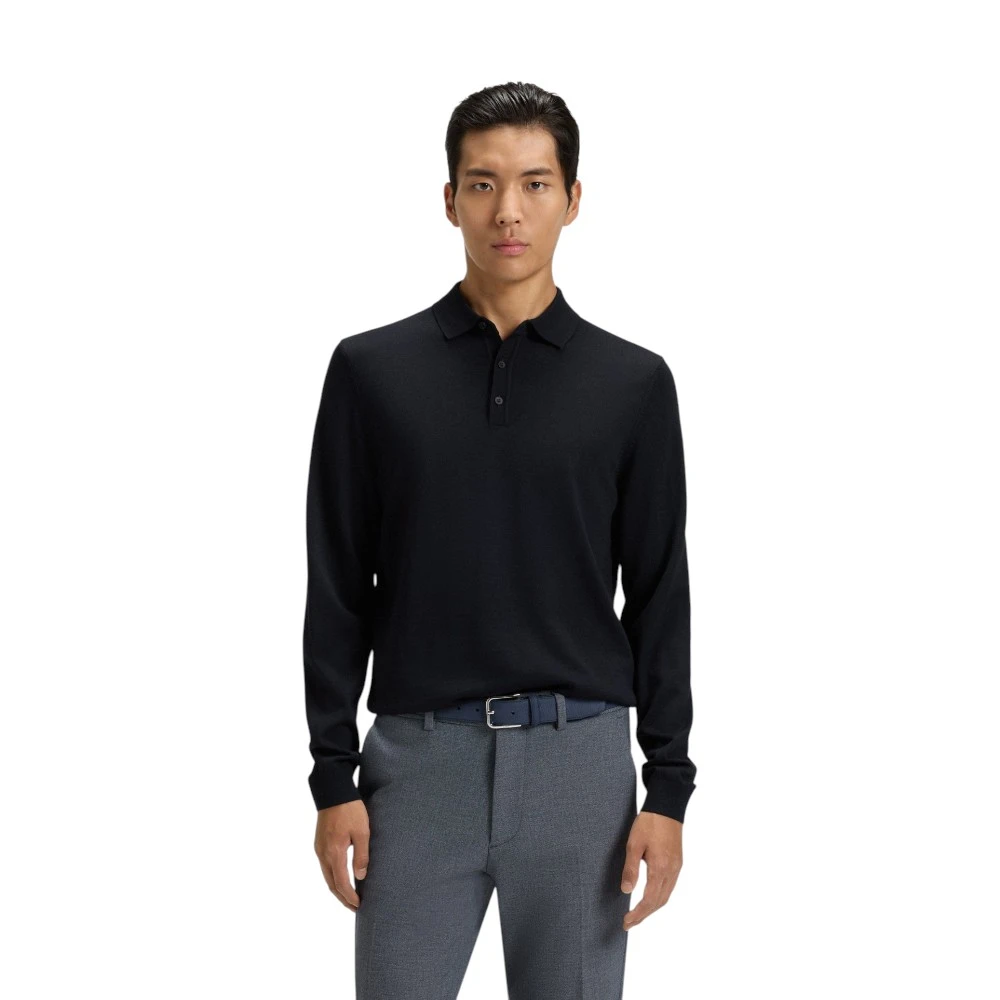 Глубокий синий оттенок придаёт образу элегантность и сдержанную выразительность. Такой цвет легко комбинируется с классическими серыми брюками, тёмными джинсами, светлыми чиносами или жакетом, позволяя создавать как деловые, так и повседневные образы. Лаконичный силуэт, аккуратный воротник-поло, планка на пуговицах и длинные рукава формируют современный и утончённый стиль, характерный для бренда Boss.