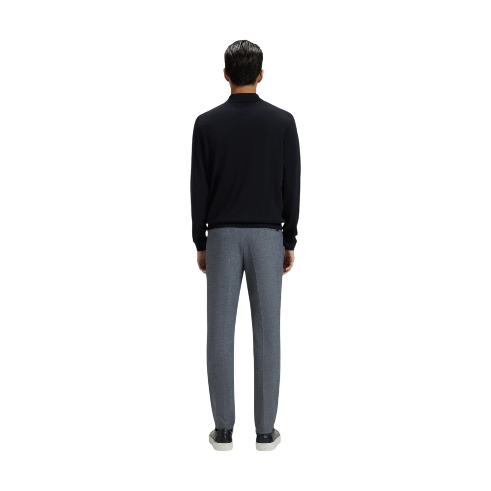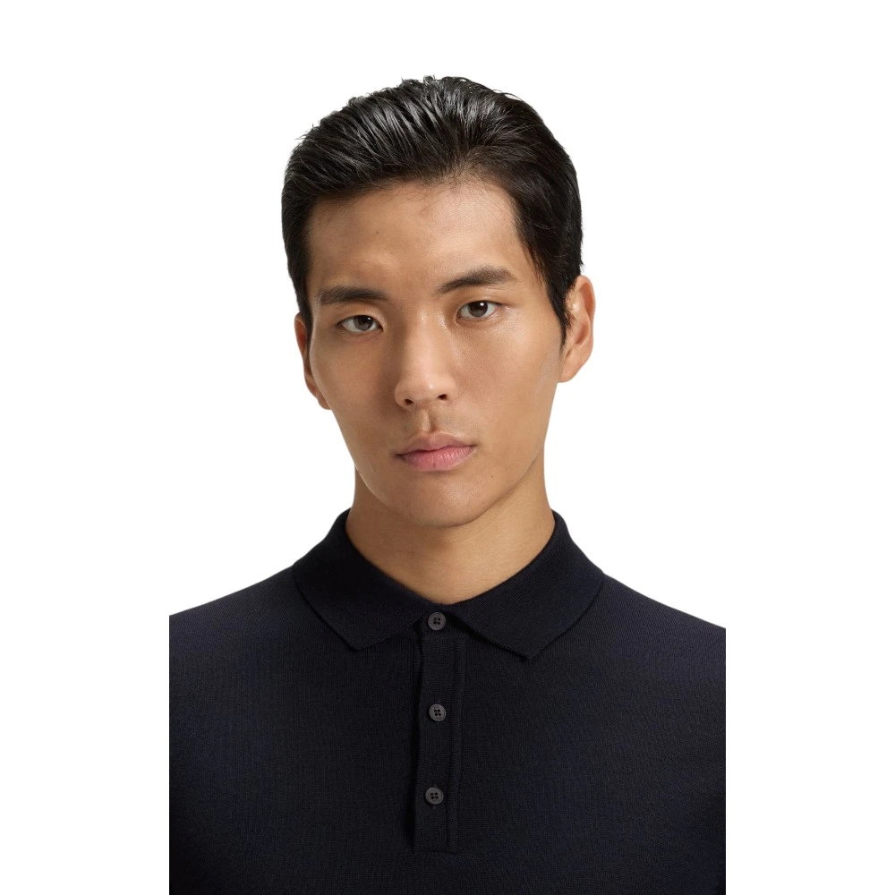 Мужской свитер-поло Boss Lancione синего цвета — стильная и универсальная модель для современного гардероба, сочетающая в себе минималистичный дизайн, комфорт и премиальное качество. Изделие выполнено из 100% натуральной шерсти, которая дарит мягкость, сохраняет тепло и обеспечивает естественную циркуляцию воздуха. Благодаря этим свойствам модель отлично подходит для прохладной погоды и комфортна в течение всего дня.