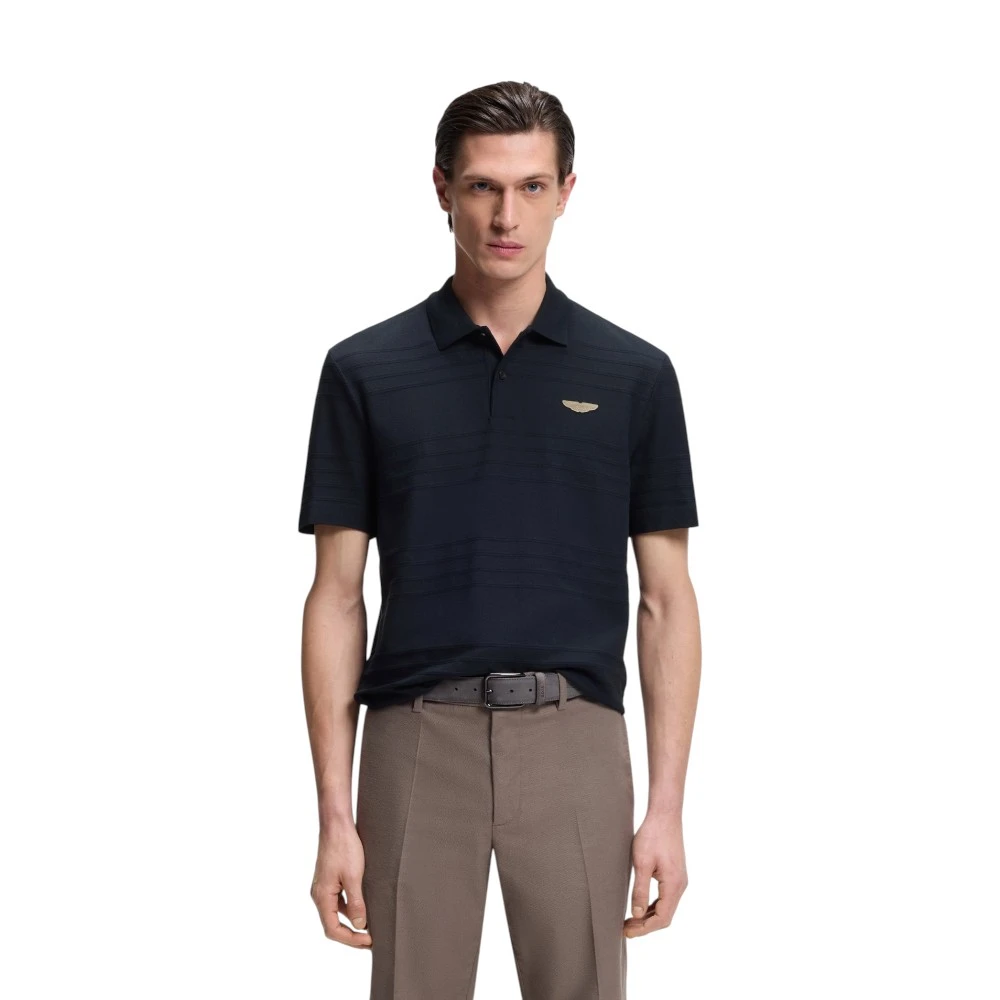 Мужское поло Boss X Aston Martin в глубоком синем цвете — это идеальное сочетание премиального стиля, технологичности и комфорта. Модель создана в рамках коллаборации Boss и легендарного автомобильного бренда Aston Martin, что отражается в лаконичном дизайне, продуманных деталях и современной эстетике.