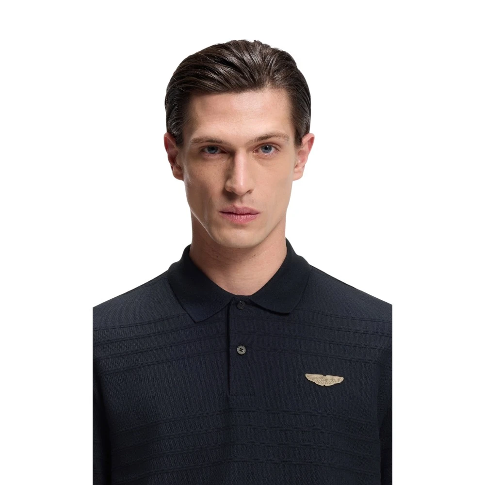 Фирменный логотип Aston Martin на груди добавляет образу статусности и подчеркивает принадлежность к эксклюзивной коллекции. Универсальный синий цвет легко комбинируется с брюками, джинсами или шортами, позволяя создавать стильные образы для любого случая.