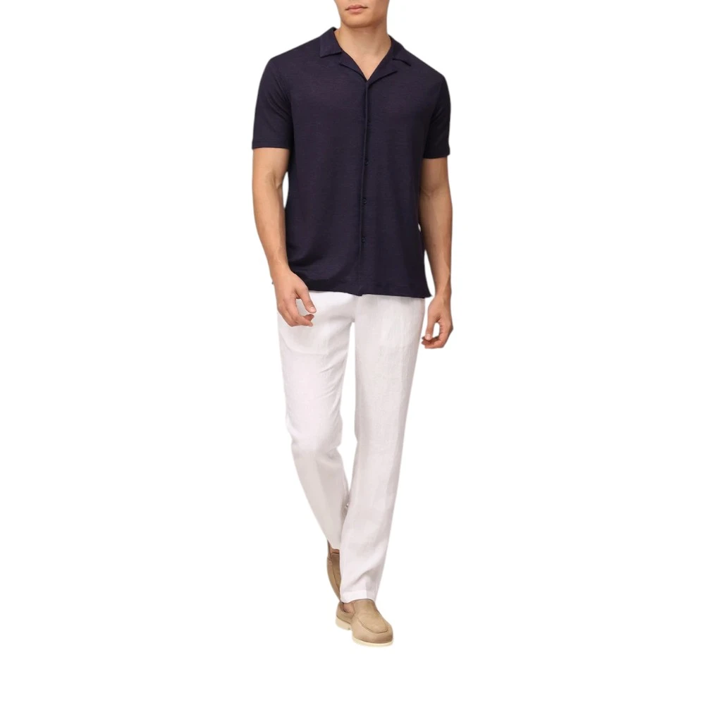 Модель с коротким рукавом и классическим отложным воротником на пуговицах делает рубашку универсальной: её можно носить как самостоятельно, так и в сочетании с брюками или шортами. Прямой крой обеспечивает комфортную посадку и аккуратный силуэт.