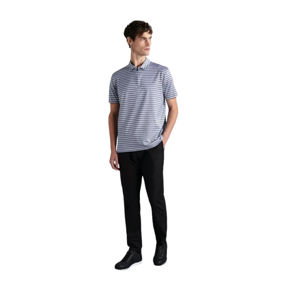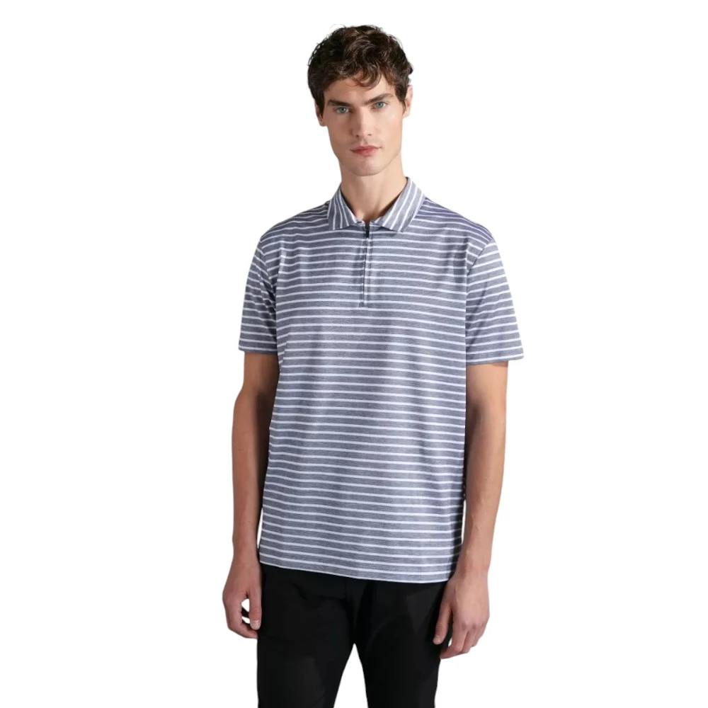 Дизайн дополнен аккуратным воротником и современной короткой застёжкой на молнии, что делает модель более актуальной и универсальной. Тонкая горизонтальная полоска добавляет образу динамики, не перегружая его и сохраняя чистоту линий. Прямой крой обеспечивает комфортную посадку и свободу движений, делая поло удобным выбором для активного дня.