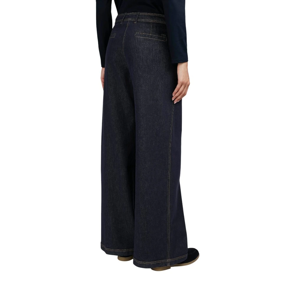Свободный крой с широкими штанинами создаёт стильный силуэт и подчёркивает актуальные тренды, обеспечивая при этом комфорт в течение всего дня. Высокая посадка визуально вытягивает фигуру, а аккуратные линии кроя делают образ более элегантным. Джинсы гармонично сочетаются с рубашками, футболками, свитерами и жакетами, позволяя создавать разнообразные сочетания — от casual до smart-casual.