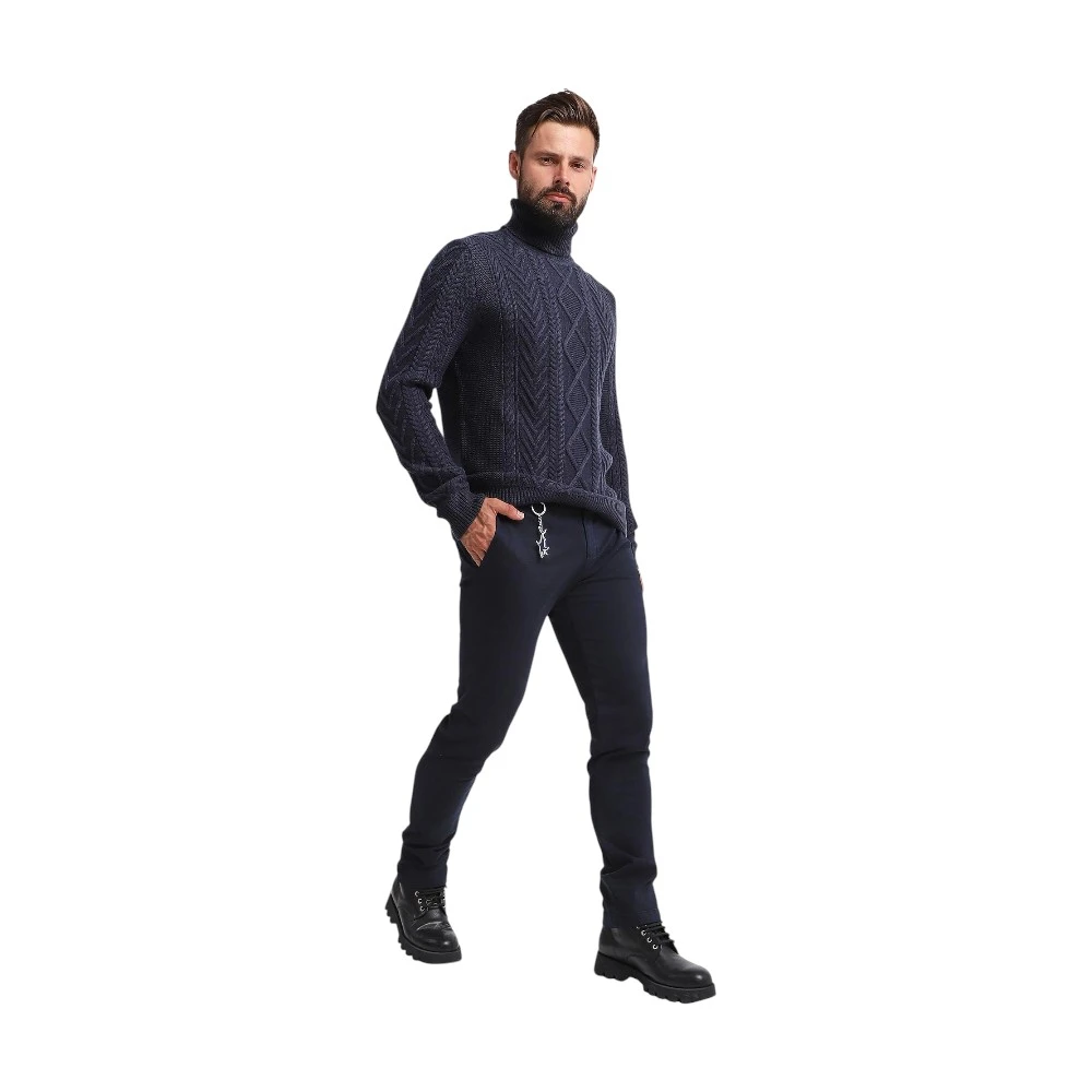 Глубокий синий оттенок делает брюки универсальными — они легко сочетаются с рубашками, футболками и пиджаками. Такая модель гармонично впишется как в повседневный, так и в более деловой гардероб.