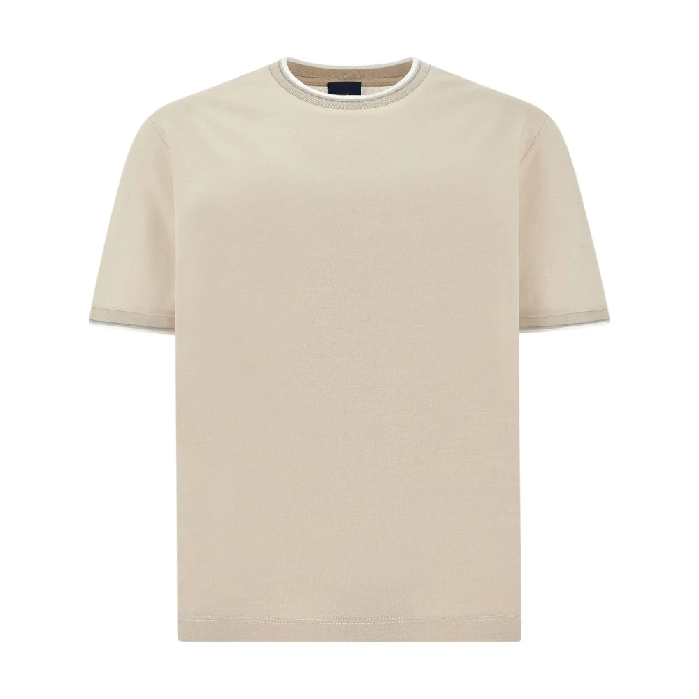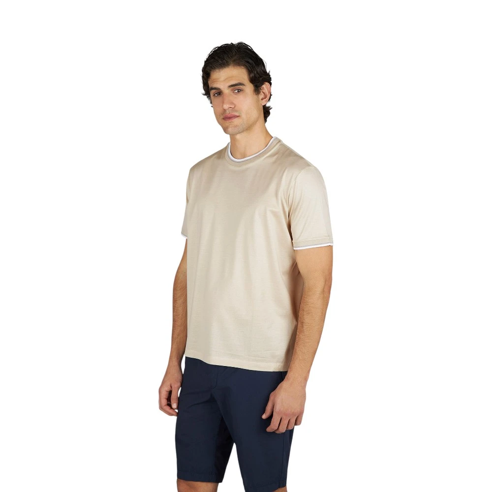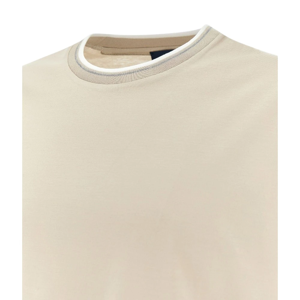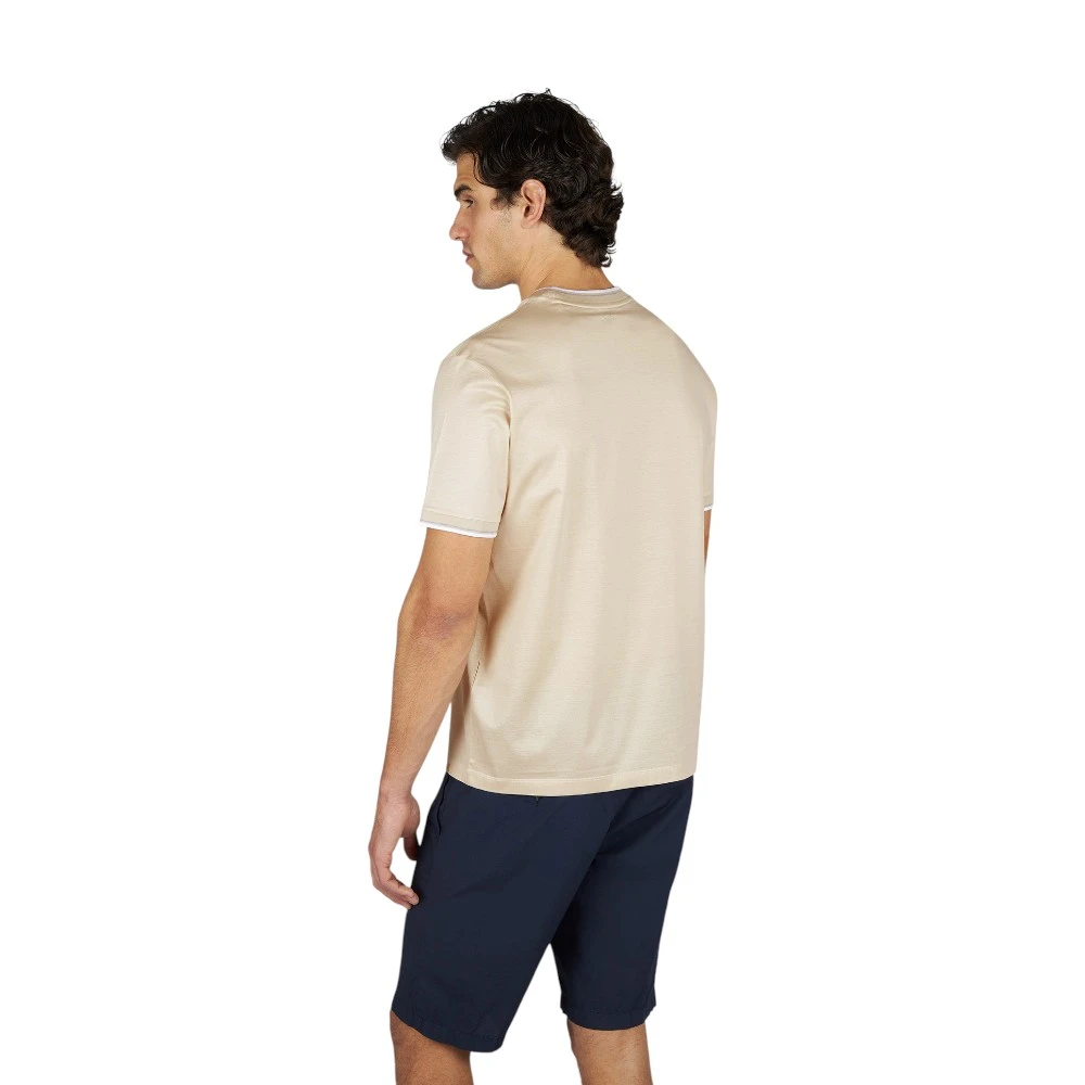 Мужская футболка Paul & Shark Double Mercerised Cotton Jersey T-Shirt в элегантном бежевом цвете — это базовая модель премиального уровня, которая сочетает комфорт, качество и сдержанный стиль. Изделие выполнено из 100% хлопка двойной мерсеризации, благодаря чему ткань приобретает особую гладкость, мягкость и лёгкий благородный блеск, а также лучше сохраняет форму и цвет даже после многократных стирок.