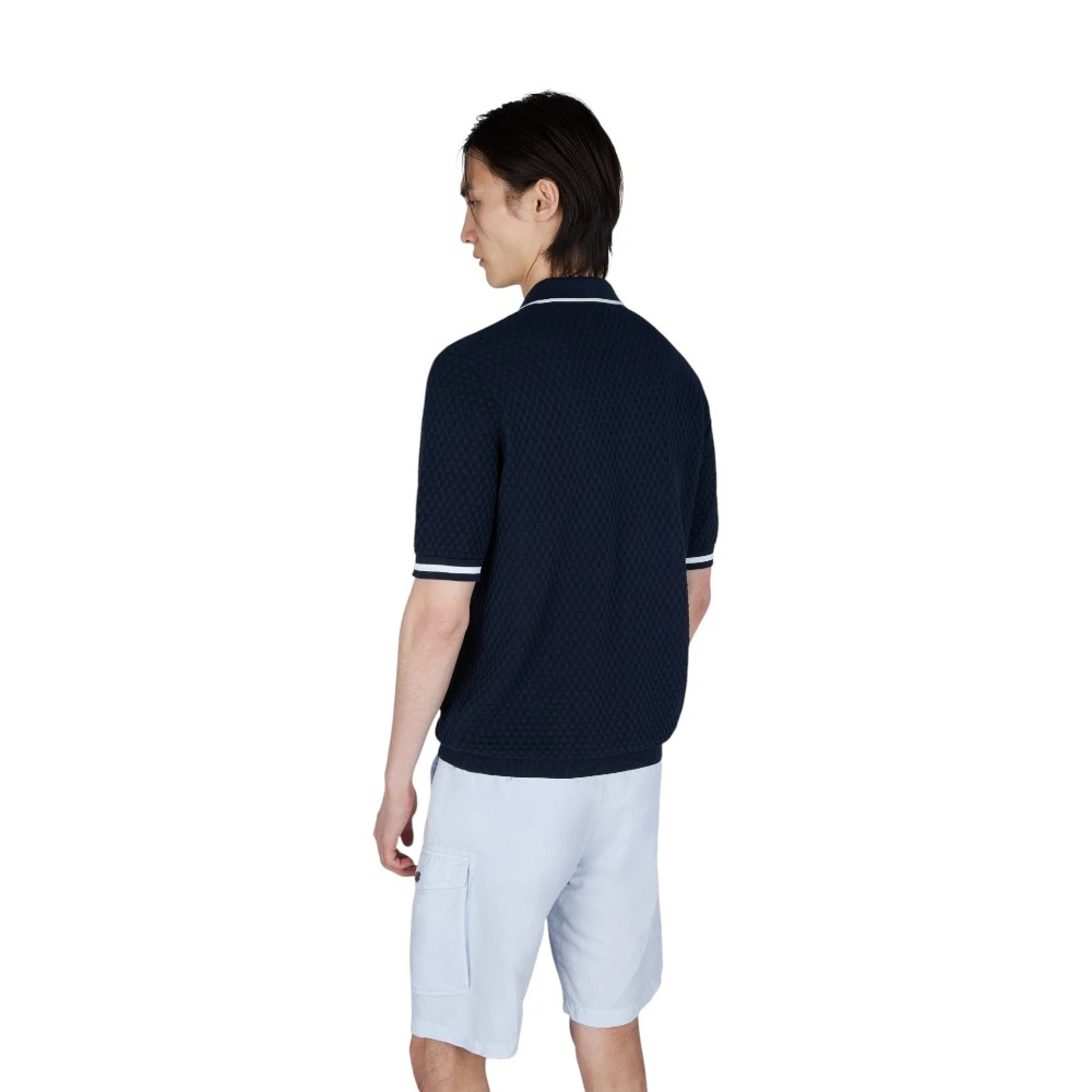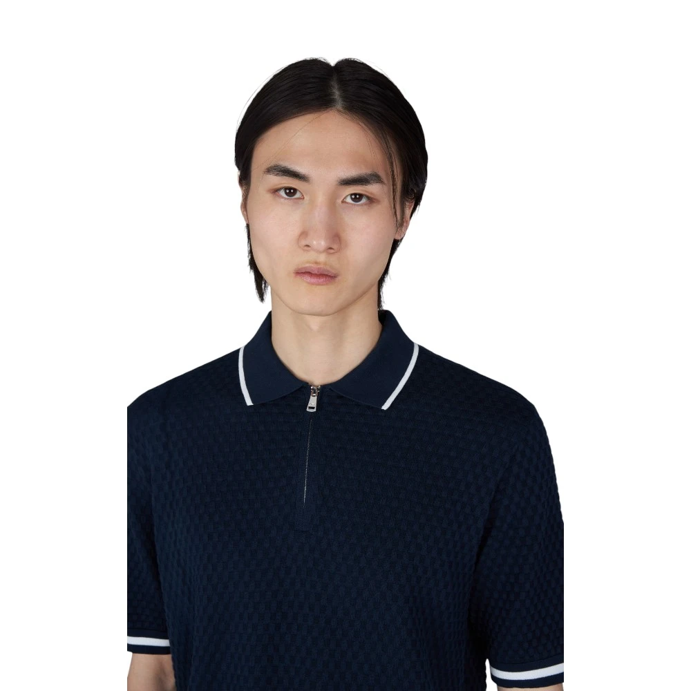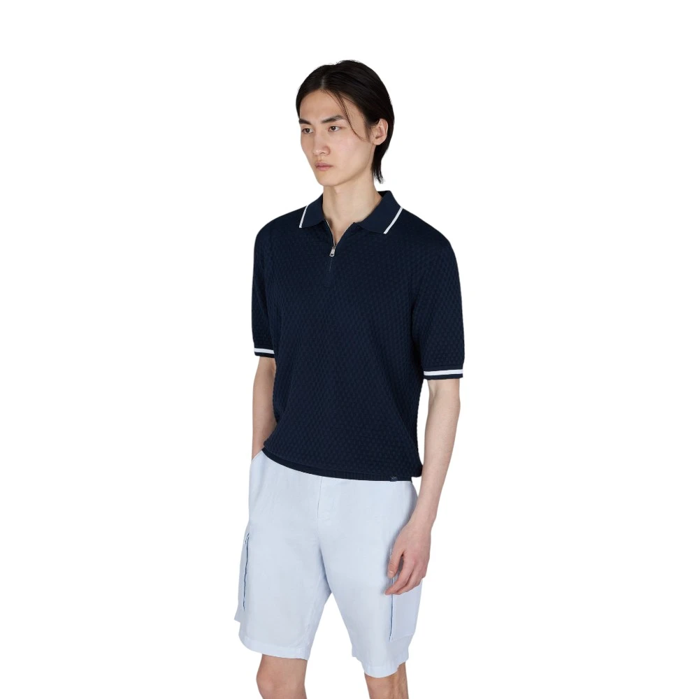 Модель дополнена аккуратным воротником с контрастной отделкой и удобной застёжкой на молнии, что добавляет современности классическому силуэту. Короткие рукава с эластичными манжетами обеспечивают комфортную посадку, а прямой крой делает поло универсальным для разных типов фигуры.