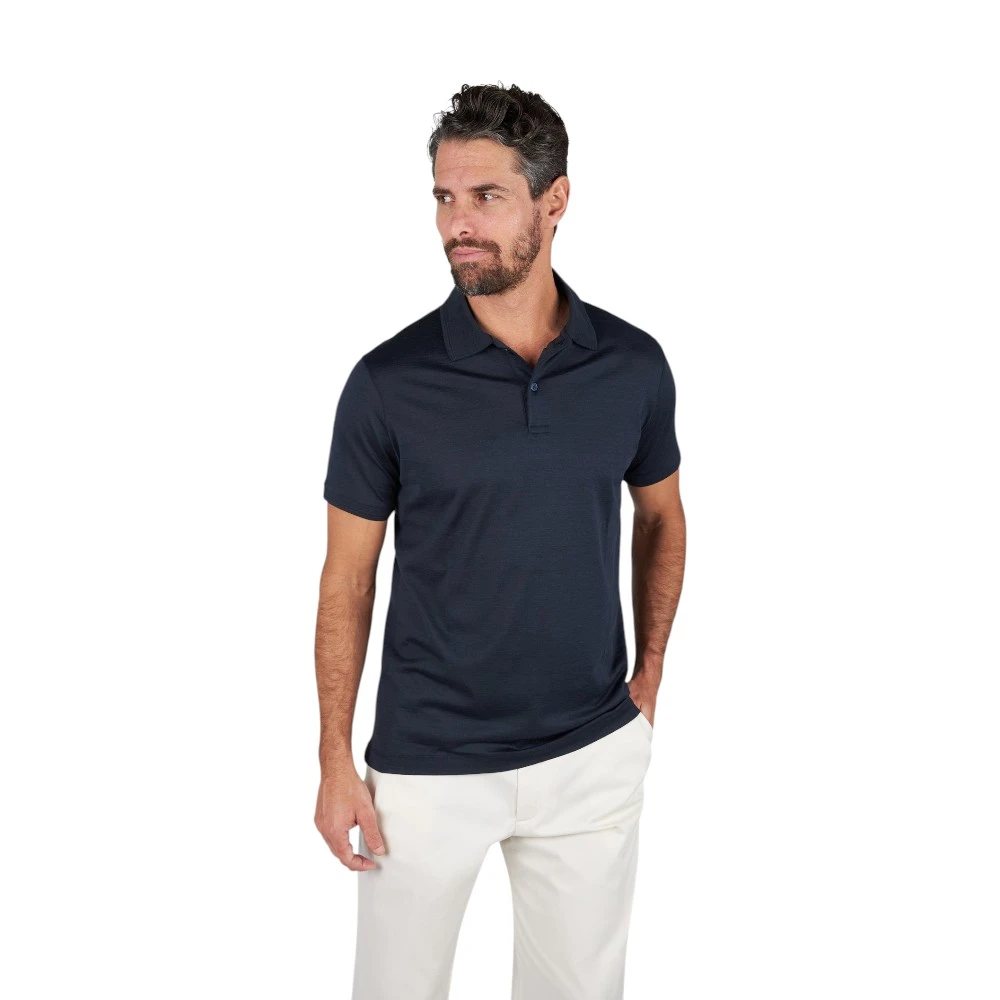 Поло имеет классический силуэт с короткими рукавами, аккуратным воротником и застёжкой на пуговицы. Благодаря продуманному крою модель хорошо садится по фигуре, не ограничивая движения, и сохраняет аккуратный внешний вид в течение дня. Насыщенный синий цвет легко комбинируется с базовыми элементами гардероба — светлыми брюками, джинсами или шортами.