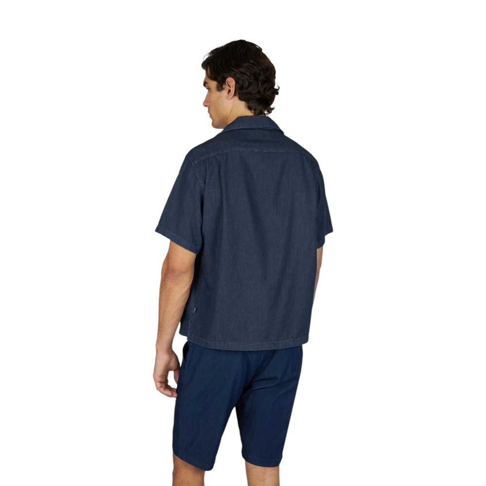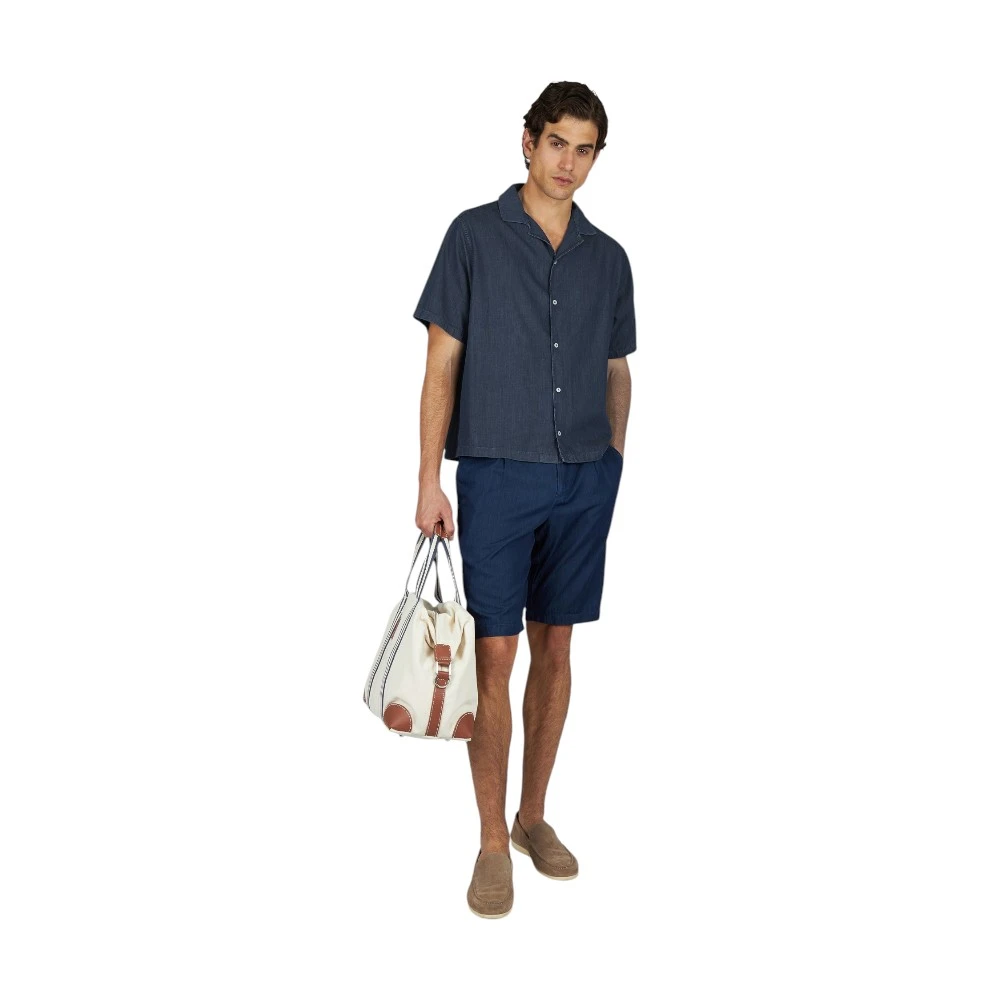 Синий цвет легко комбинируется с различными оттенками — от светлых бежевых брюк до тёмных джинсов или шорт, позволяя создавать стильные и сбалансированные образы. Натуральный хлопок обеспечивает комфорт даже в тёплую погоду, делая рубашку отличным выбором для прогулок, отдыха и путешествий.